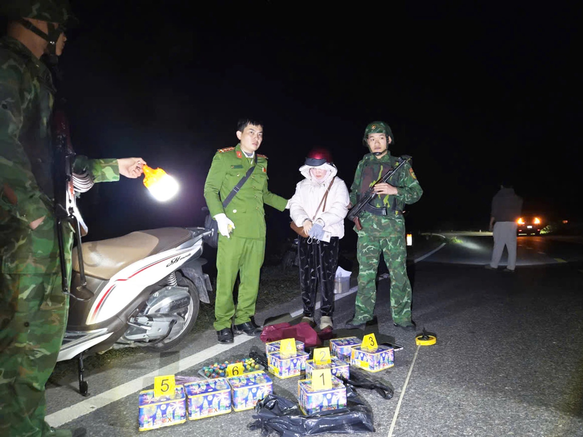 Sáng 12/1, Đồn Biên phòng Cửa khẩu cảng Cửa Việt thông tin, đơn vị vừa phối hợp Công an xã Bến Hải bắt giữ, xử lý 1 đối tượng nữ có hành vi vận chuyển trái phép pháo hoa nổ.