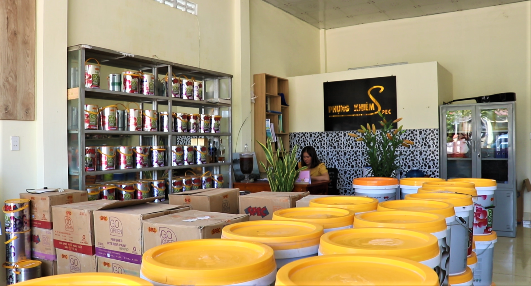Trung tâm Pha màu Phụng Khiêm Spec có địa chỉ tại số 27 Lê Thế Tiết (khóm Xuân Phước, thị trấn Lao Bảo, Hướng Hoá, Quảng Trị) chuyên cung cấp, phân phối dòng sơn Spec Go Green. Với hơn 5 năm kinh nghiệm trong lĩnh vực phân phối và thi công sơn, Trung tâm Pha màu Phụng Khiêm Spec có đủ máy móc hiện đại cùng đội ngũ nhân viên tư vấn nhiệt tình, sẵn sàng phục vụ khách hàng tốt nhất.