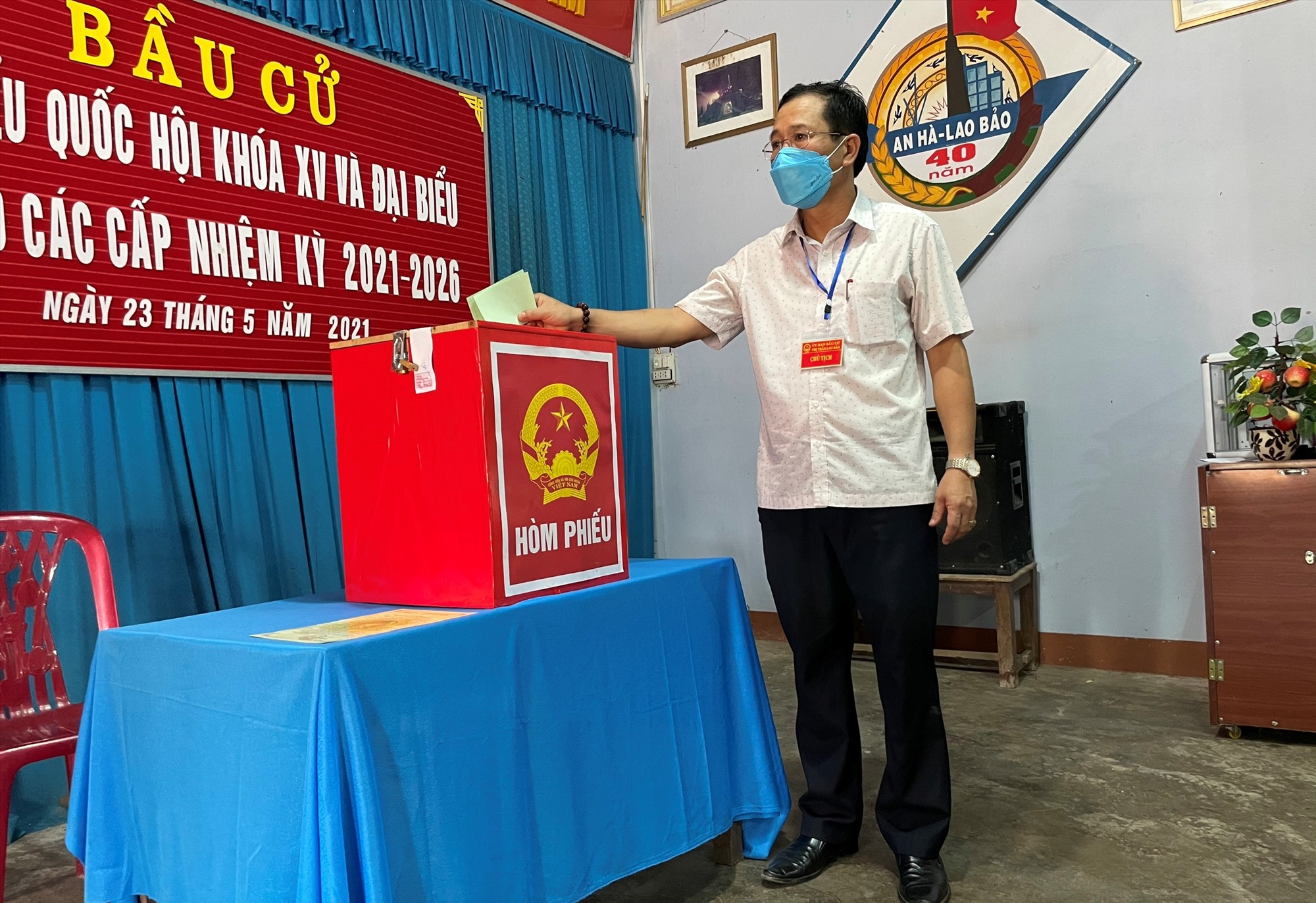 Cũng trong sáng cùng ngày, Bí thư Thành uỷ Đà Nẵng Nguyễn Văn Quảng đã đến kiểm tra điểm bỏ phiếu số 1 phường Thạch Thang, quận Hải Châu.