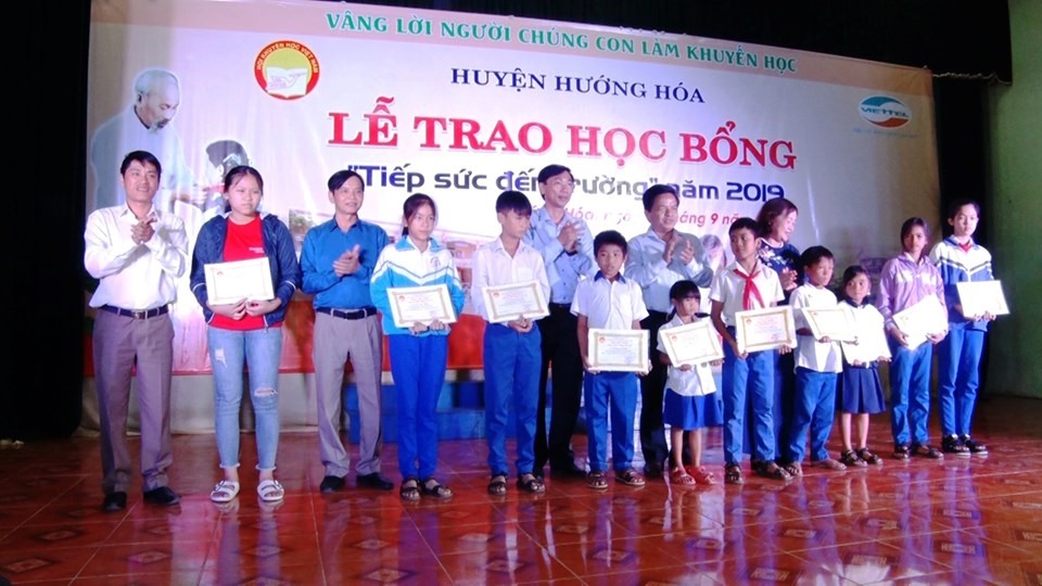 Tại huyện Hướng Hóa (Quảng Trị) vừa diễn ra ngày hội trao học bổng “Tiếp sức đến trường” năm 2019 cho các đối tượng học sinh, sinh viên có hoàn cảnh khó khăn đạt thành tích cao trong học tập trên địa bàn huyện.