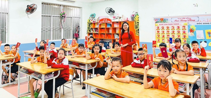 Sau hoạt động, các học sinh vào lớp cũng được giáo viên lì xì theo phong tục Tết cổ truyền.