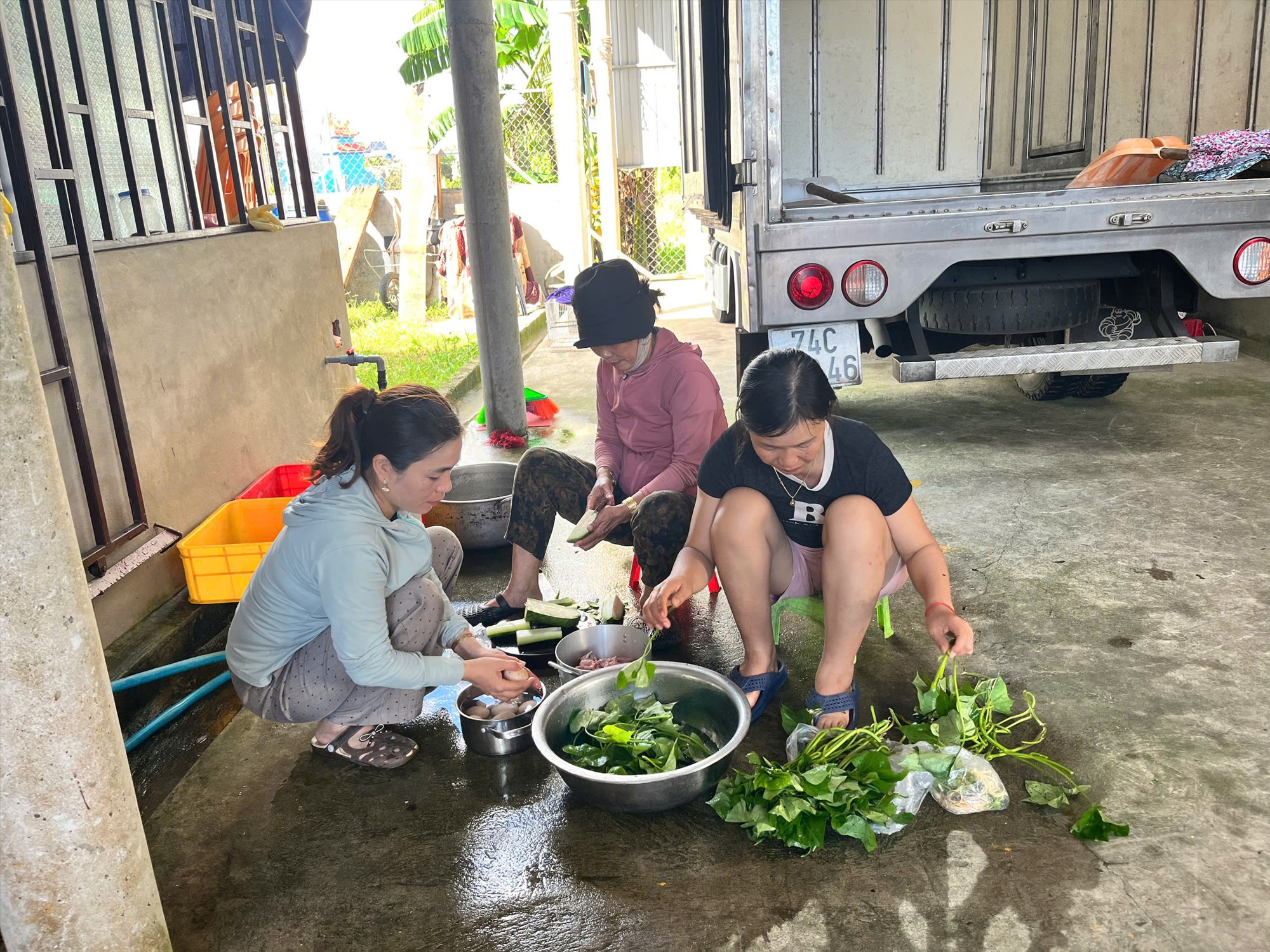 Từ sáng sớm, không ai gọi ai, chị Minh, chị Phượng, chị Thanh, chị Hoài… đã có mặt tại nhà chị Tuynh (thôn Phú Hội) để chia ra người nấu cơm, người nhặt rau, người đi chợ. Họ làm trong âm thầm lặng lẽ, không nói, cười mà trong họ chỉ có một điều duy nhất là cầu mong cho có phép màu nào đó để 02 thuyền viên gặp nạn được trở về bình an.