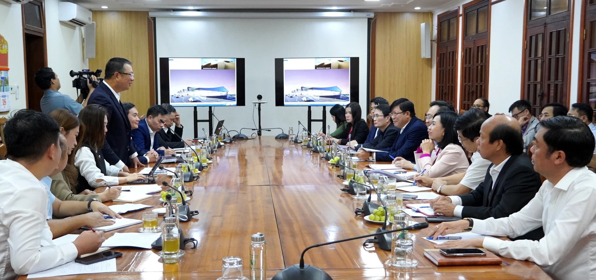 Sáng 7/11, UBND tỉnh tổ chức buổi làm việc với Tổng công ty Cảng hàng không Việt Nam (ACV) để trao đổi các nội dung liên quan đến việc hợp tác quảng bá, xúc tiến du lịch, do đồng chí Phó Chủ tịch UBND tỉnh Hoàng Xuân Tân chủ trì. Tham dự có ông Trần Anh Vũ, Phó Tổng Giám đốc ACV và các thành viên đoàn công tác; đại diện các sở, ban, ngành liên quan.