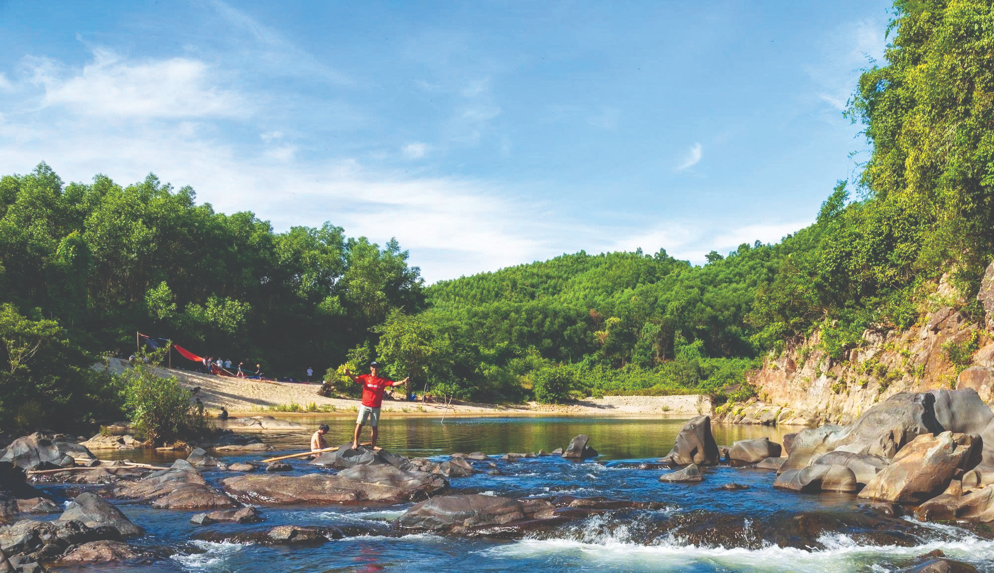 Chính sự giao thoa giữa thiên nhiên và lịch sử đã tạo nên chiều sâu đặc biệt cho điểm đến này. Chuyến đi không chỉ là ngắm cảnh. Ngay giữa dòng nước trong veo, chúng tôi dựng một chiếc bàn dã chiến. Thức ăn mang theo được bày ra đơn giản, nhưng khung cảnh thì không nơi nào sánh được. Nằm giữa dòng suối, để nước mát vuốt ve cơ thể, vừa thưởng thức bữa ăn giữa thiên nhiên, đó là một trải nghiệm khó quên.