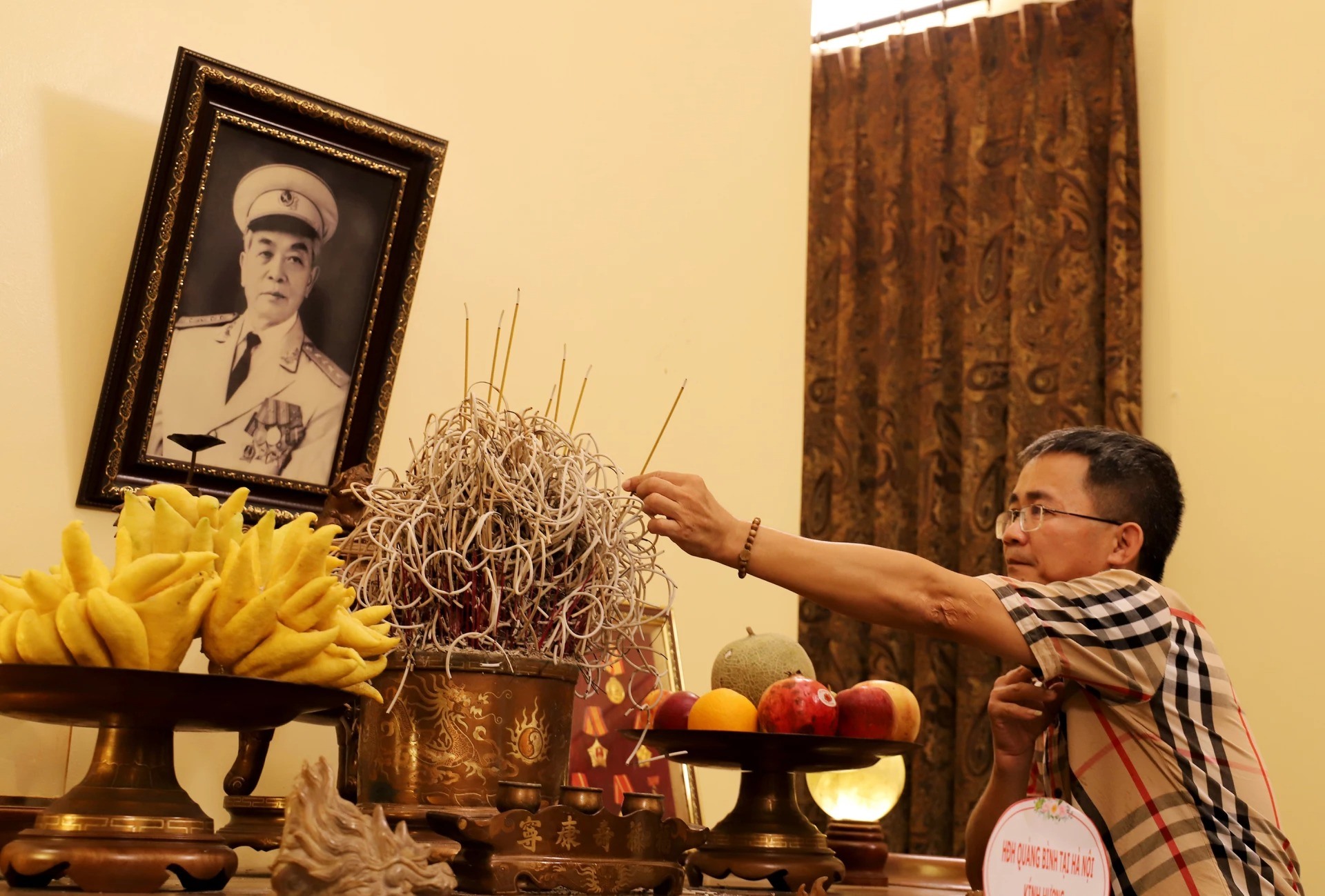 Thắp nén nhang tri ân Đại tướng Võ Nguyên Giáp tại 30 Hoàng Diệu, tiếng chị Võ Hòa Bình nhè nhẹ: “Hôm ni có các cháu người Quảng Bình đến dâng hương cho ba đó nghe!”.