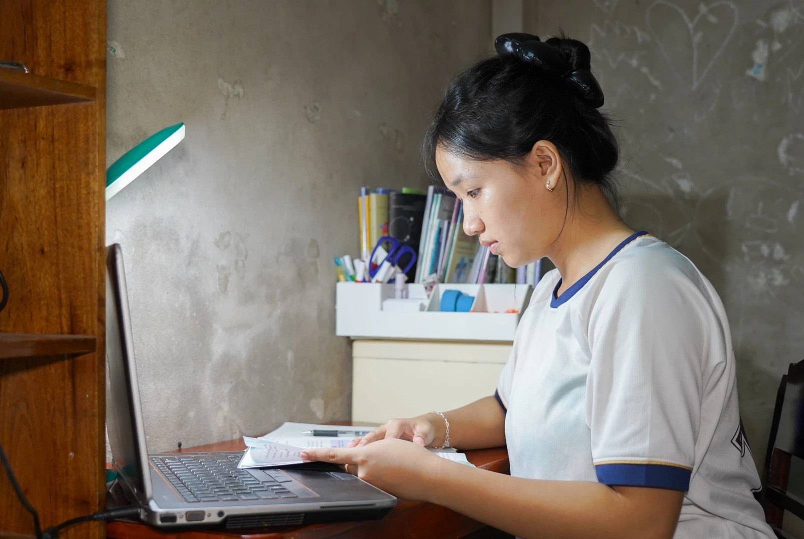 Đúng 19 giờ, sau lời nhắc nhở học bài vang lên, em Phan Quỳnh Thư ở thôn Xuân Lâm, xã Ba Lòng, hiện đang học lớp 9, Trường tiểu học và THCS Triệu Nguyên nghiêm túc ngồi vào bàn học.