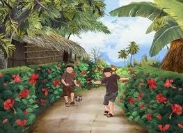 Có một con mương kế bên con đê làng, vừa tiện dẫn nước tưới tiêu vào ruộng, vừa để bà con ra cọ rửa, giặt giũ. Còn lũ trẻ chúng tôi vẫn thường ra chỗ con mương, nơi “phình” to nhất để bơi lội, bắt cua, bắt cá. Mùa hè nước mương mát rười rượi, tiếng cười khanh khách của lũ trẻ lúc nào cũng vang vọng cả một khoảng không. Muốn tìm đứa này đứa kia, chẳng cần đi đâu, chạy ra con đê là thấy ngay bọn nó. Những chú bò béo múp, lông óng mượt thong dong gặm cỏ trên đê. Có những ngày ngồi trên lưng trâu bò, chúng tôi thổi sáo, hát những khúc đồng dao quen thuộc. Có những ngày chúng tôi lại nằm ườn ngay sườn đê, chỗ trảng cỏ dày, xanh mướt nhất. Cũng chẳng để làm gì, mặc cho gió thổi ngang qua, nhìn những áng mây trôi trên đầu bồng bềnh rồi ước là cánh chim nhỏ xíu tự do bay trên không trung.