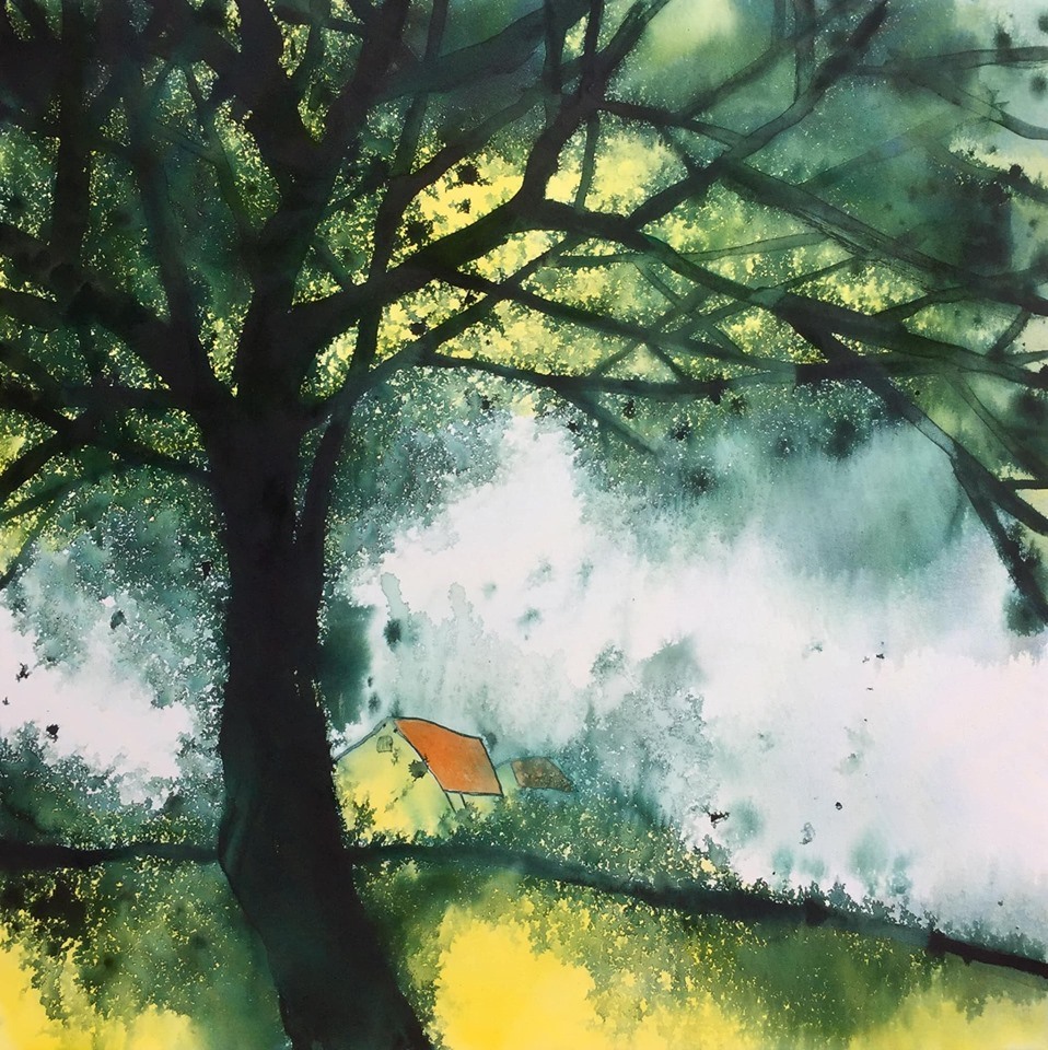 Chiều về, tôi nằm ở cánh võng, ngó nghiêng khu vườn đầy lá lộc vừng trút xuống giữa những ngày xuân. Nhiều người đi ngang kêu sao không quét lá vàng? Tôi cười: “Để rứa cho bui (vui) cửa bui nhà”.