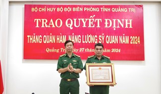 Ngày 23/6, Đảng ủy, Bộ Chỉ huy Bộ đội Biên phòng (BĐBP) tỉnh Quảng Trị đã tổ chức Hội nghị công bố, trao quyết định của Bộ Quốc phòng, Bộ Tư lệnh BĐBP và quyết định của Bộ Chỉ huy BĐBP tỉnh về bổ nhiệm, điều động, thăng quân hàm, nâng lương cho cán bộ.