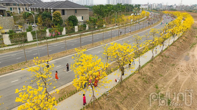 Cung đường hoa phong linh trong khuôn viên khu đô thị Park City (quận Hà Đông, Hà Nội) đang nở rộ, thu hút rất nhiều người dân tới chụp ảnh vui chơi.