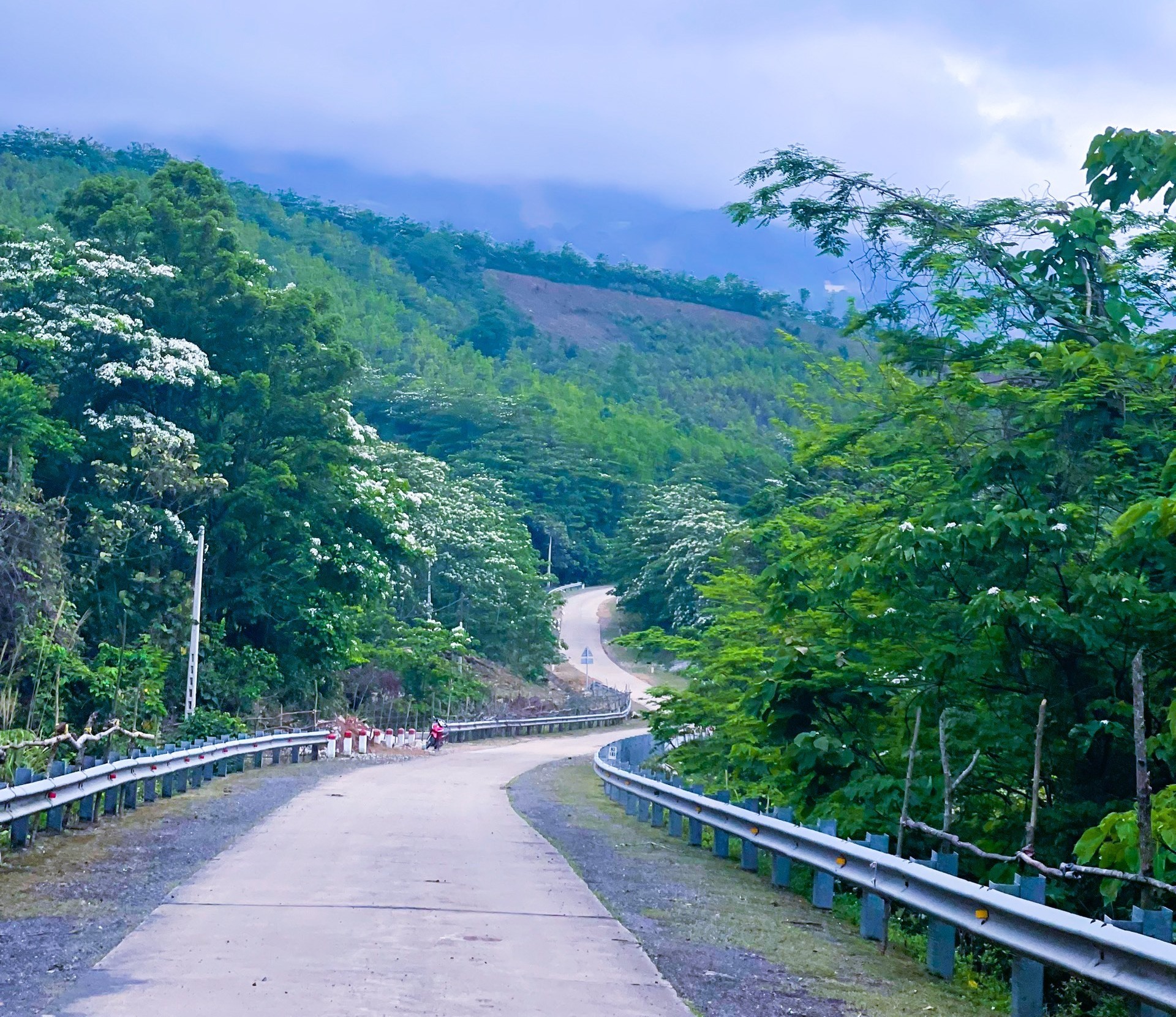 Mùa này, hoa trẩu đua nhau khoe sắc, tô điểm thêm vẻ lung linh dọc tuyến đường Hồ Chí Minh nhánh tây đoạn qua huyện Hướng Hoá (Quảng Trị).