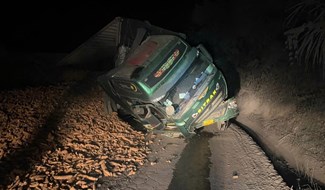 Lật xe chở sắn, đường lên Cửa khẩu La Lay ách tắc