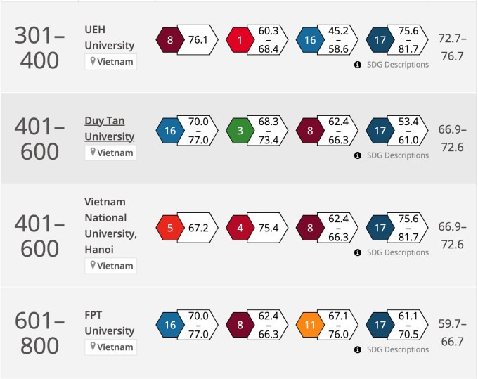 Lần đầu tiên trường Đại học Kinh tế TP HCM và Mở TP HCM có mặt trong bảng xếp hạng, và vào ngay top 301 - 400.