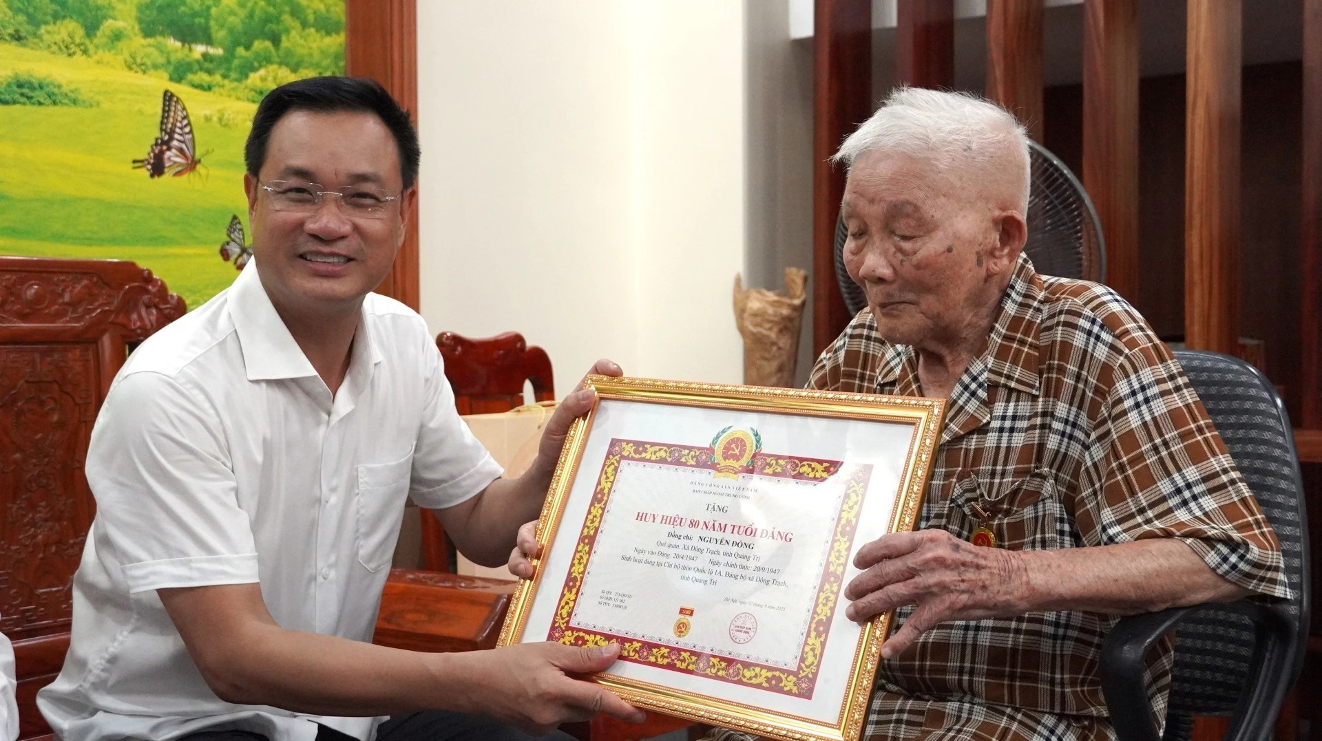 Tại buổi lễ, lãnh đạo tỉnh Quảng Trị đã tặng hoa, chúc mừng Phó Bí thư Đảng ủy CCQ Đảng Trung ương Nguyễn Long Hải.