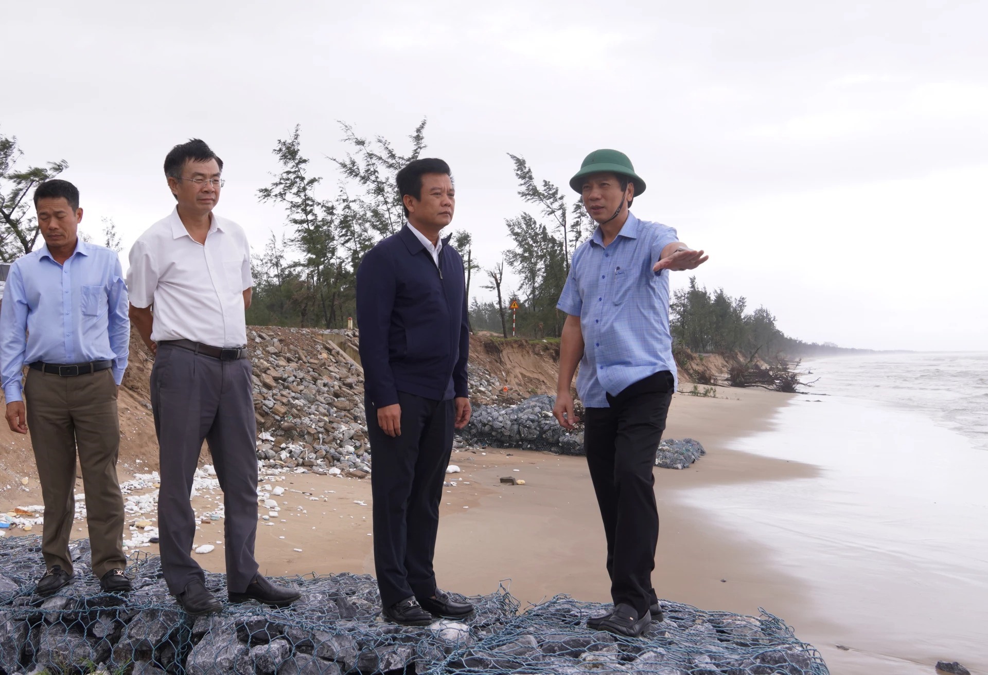 Dịp này, đồng chí Phó Chủ tịch Thường trực UBND tỉnh Hoàng Nam đã đến kiểm tra tình hình sạt lở bờ biển tại tuyến kè biển Quảng Phúc (phường Bắc Gianh).