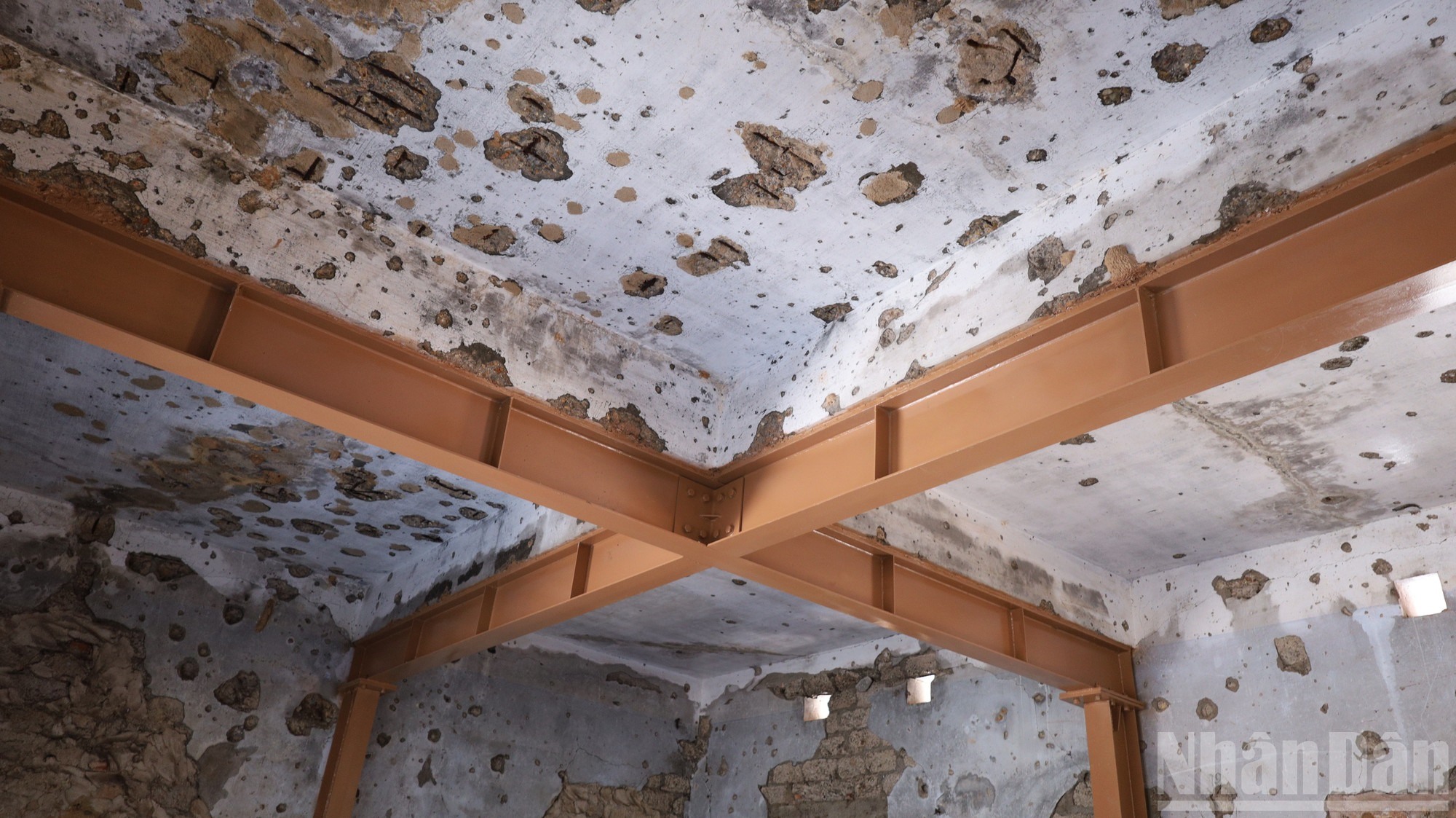 Bề mặt tường và sàn được vệ sinh bằng hóa chất chuyên dụng, xử lý rêu mốc, tảo bám, đồng thời sơn chống thấm để hạn chế tác động của thời tiết. Những vết tích chiến tranh vẫn được giữ lại như một phần không thể tách rời của di tích, giúp công trình tiếp tục “kể chuyện” về quá khứ.