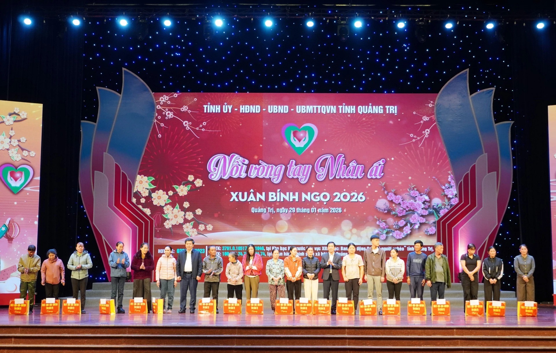 Tối 29/1, tại Trung tâm Văn hóa-Điện ảnh tỉnh, phường Đồng Hới, Ủy ban MTTQ Việt Nam tỉnh phối hợp với Báo và phát thanh, truyền hình Quảng Trị tổ chức Chương trình “Nối vòng tay nhân ái” Xuân Bính Ngọ 2026 nhằm kết nối, lan tỏa những giá trị yêu thương, góp phần giúp đỡ những gia đình có hoàn cảnh khó khăn trên địa bàn tỉnh đón Tết cổ truyền sum vầy, ấm áp hơn.
