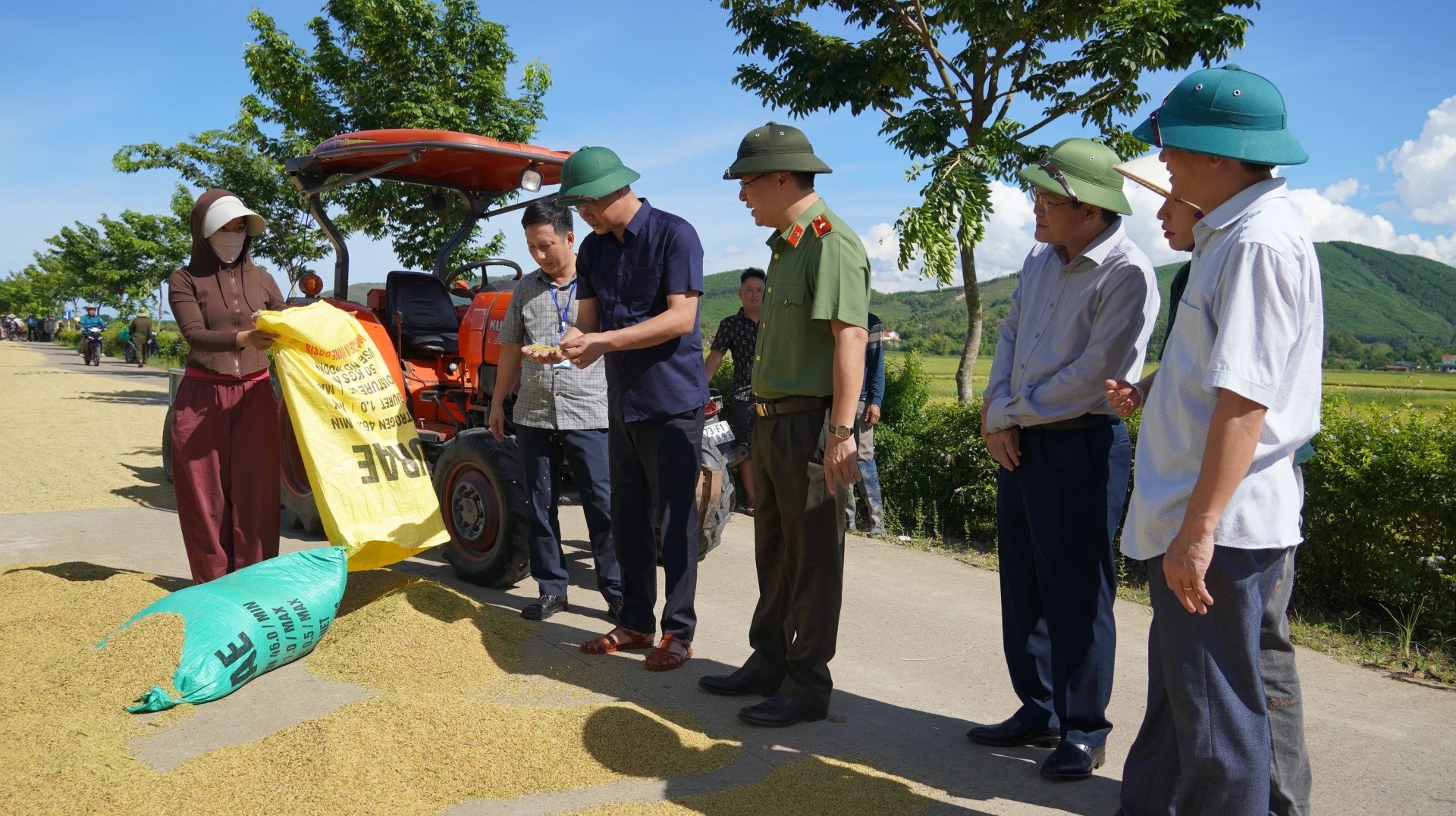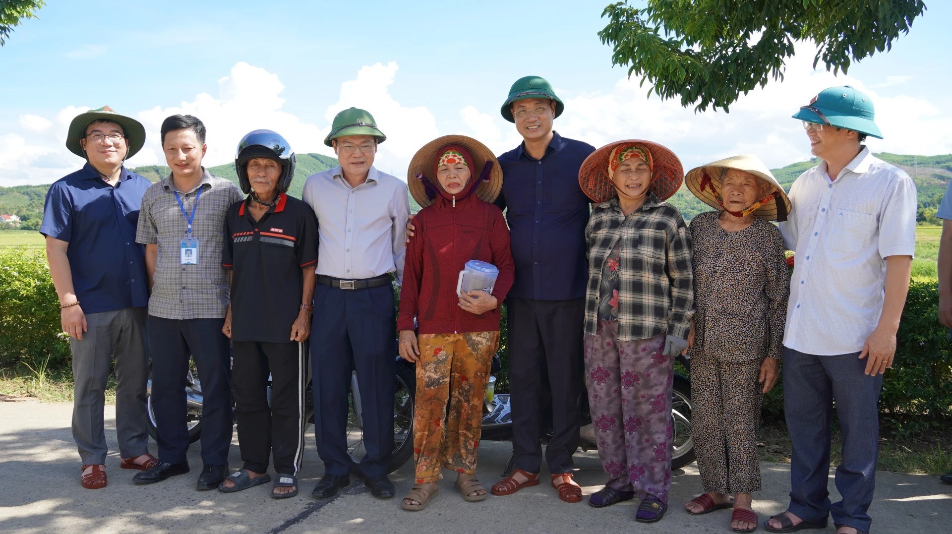 Thăm, động viên bà con nông dân đang tranh thủ thu hoạch các diện tích lúa nhằm giảm thiệt hại do bão số 5, Bí thư Tỉnh ủy Lê Ngọc Quang đã ân cần thăm hỏi, chia sẻ và động viên bà con nông dân.