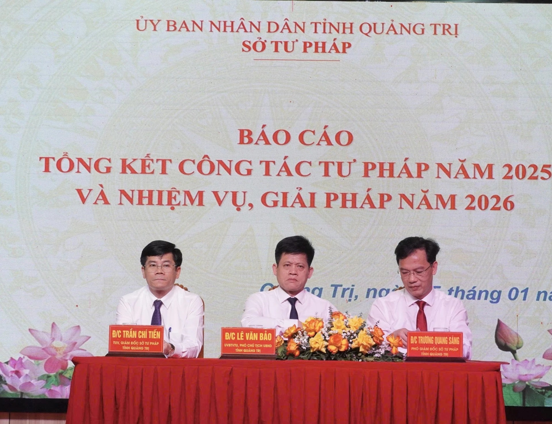 Năm 2025, ngành Tư pháp tỉnh Quảng Trị tiếp tục khẳng định vai trò là cơ quan nòng cốt trong tham mưu xây dựng, hoàn thiện thể chế, pháp luật của tỉnh. Ngành đã hoàn thành việc sắp xếp tổ chức bộ máy sau hợp nhất, bảo đảm hoạt động ổn định, thông suốt. Công tác chuyển đổi số tiếp tục là điểm sáng của ngành Tư pháp với 100% thủ tục hành chính thuộc thẩm quyền đủ điều kiện được cung cấp dịch vụ công trực tuyến, tỉ lệ hồ sơ tiếp nhận trực tuyến đạt gần 99%, góp phần nâng cao chất lượng phục vụ người dân và doanh nghiệp.