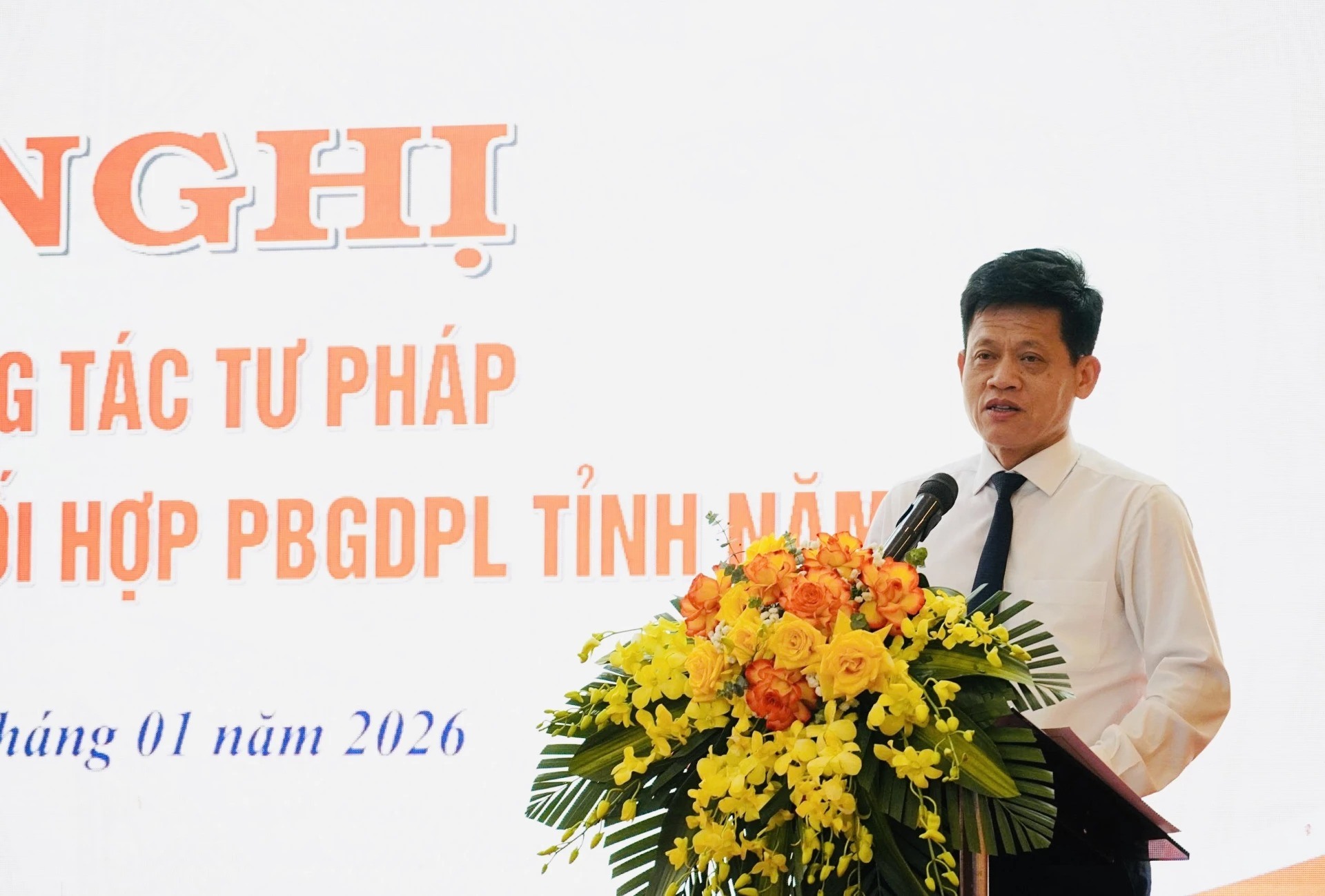 Chiều 5/1, Sở Tư pháp tổ chức hội nghị triển khai công tác tư pháp và nhiệm vụ của Hội đồng Phối hợp phổ biến, giáo dục pháp luật (PBGDPL) tỉnh năm 2026. Tham dự có đồng chí Lê Văn Bảo, Ủy viên Ban Thường vụ Tỉnh ủy, Phó Chủ tịch UBND tỉnh.
