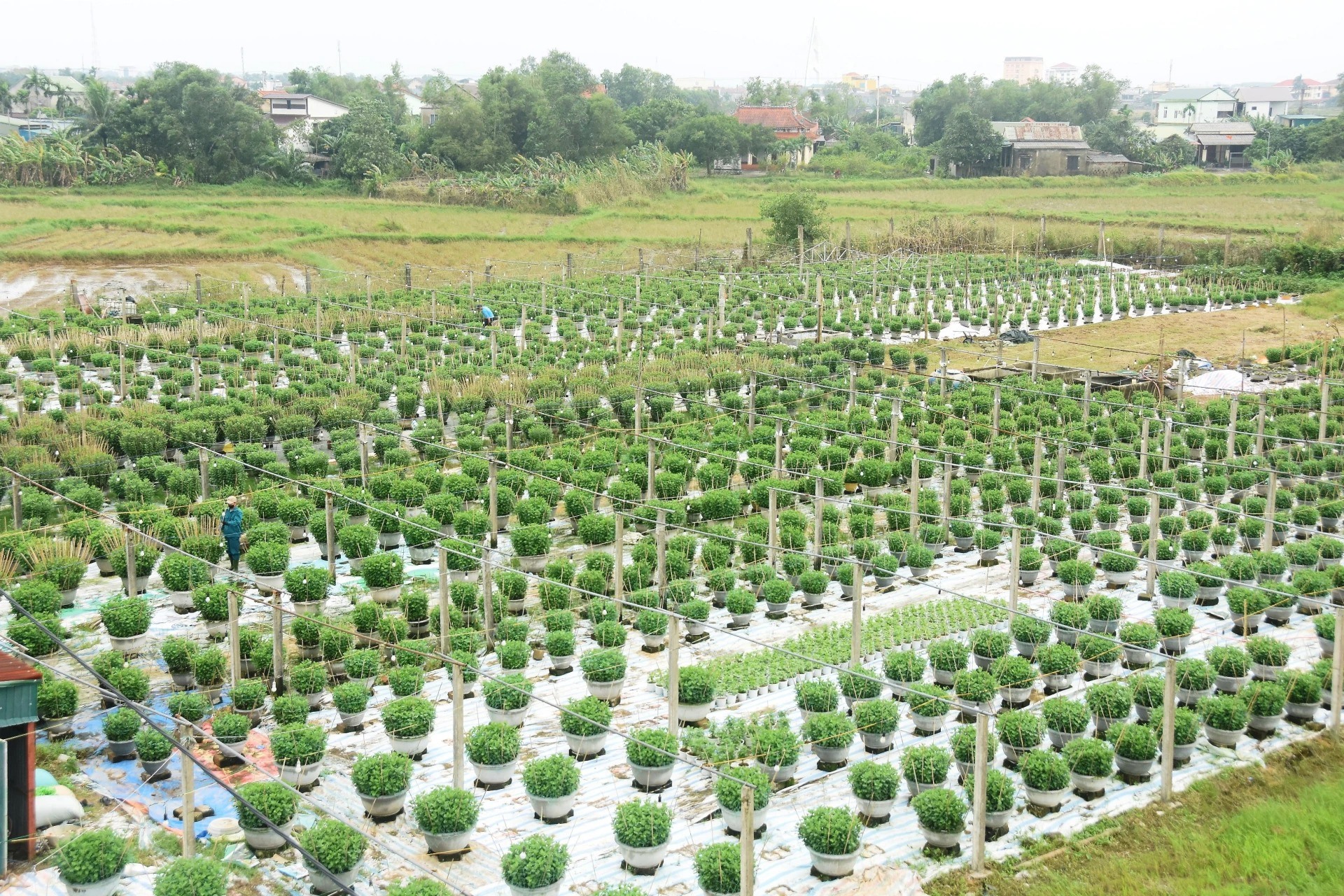 Bước vào vụ hoa Tết năm nay, gia đình ông Hoàng Nhật Trinh ở phường Đông Hà trồng hơn 2.000 chậu hoa các loại, trong đó hoa cúc mâm xôi là cây hoa chủ lực của vườn. Nhìn vườn hoa đang độ xanh mướt, ông Trinh rất kỳ vọng.