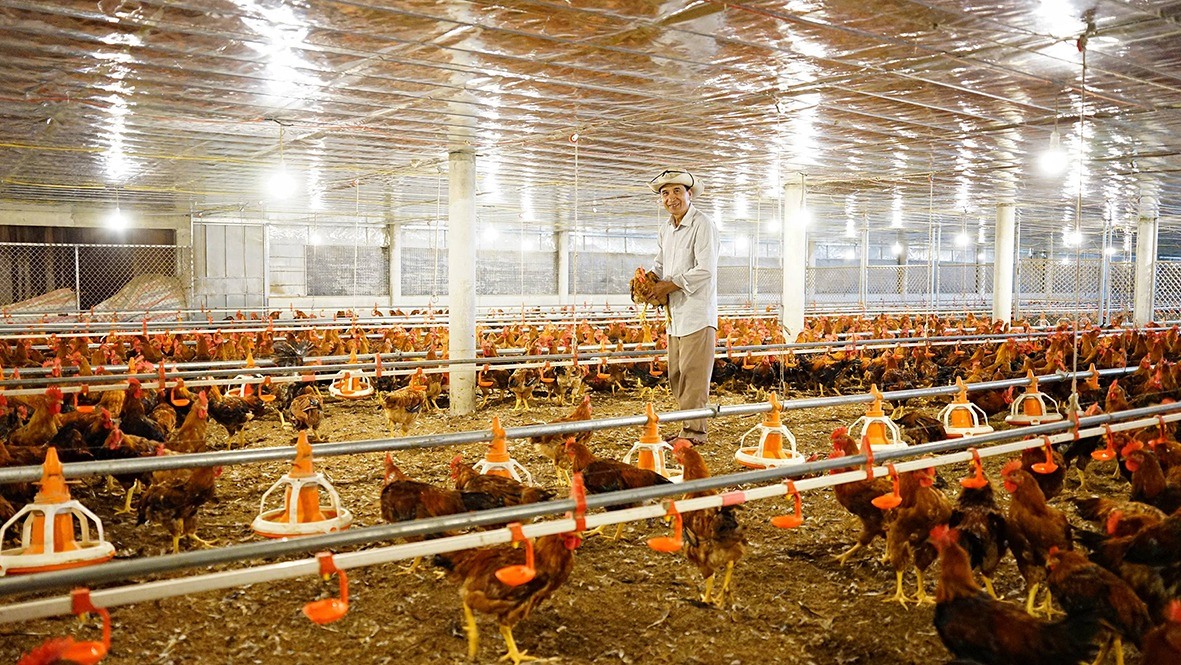 Theo đó, trên diện tích 0,7 ha của gia đình, ông đã xây dựng chuồng trại khép kín rộng 0,3 ha với hệ thống giàn làm mát, thông gió tự động để kiểm soát nhiệt độ trong chuồng; máng ăn uống tự động điều chỉnh lượng thức ăn phù hợp với từng giai đoạn phát triển của gà. Ngoài ra ông còn trang bị máy phát điện dự phòng, xây dựng hệ thống xử lý chất thải và các công trình phụ trợ phục vụ cho việc chăn nuôi.