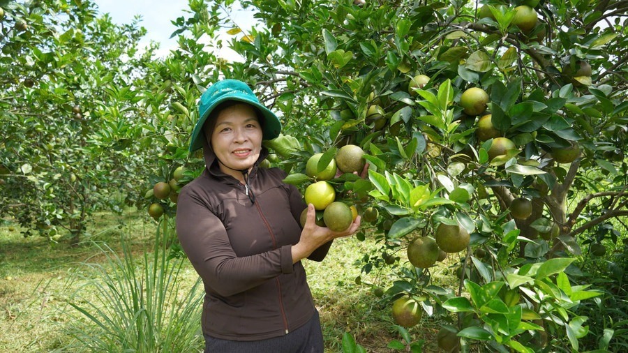 Gia đình bà Trần Thị Duyên (SN 1974, thôn Long Hưng) trồng cam từ nhiều năm nay. Cây cam đã mang lại nguồn thu đáng kể cho gia đình.