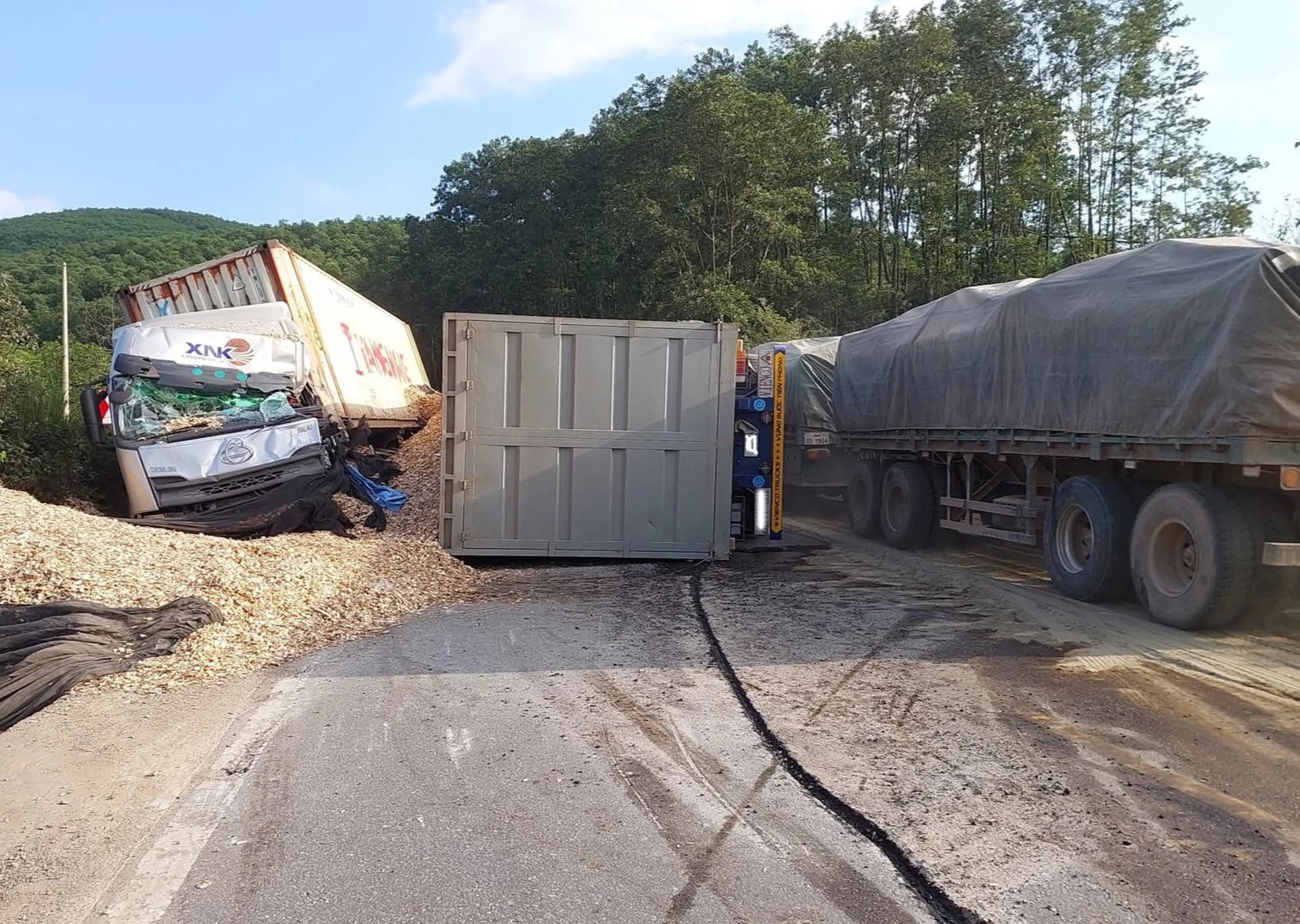 Xe tải lật nghiêng tại đường tránh lũ