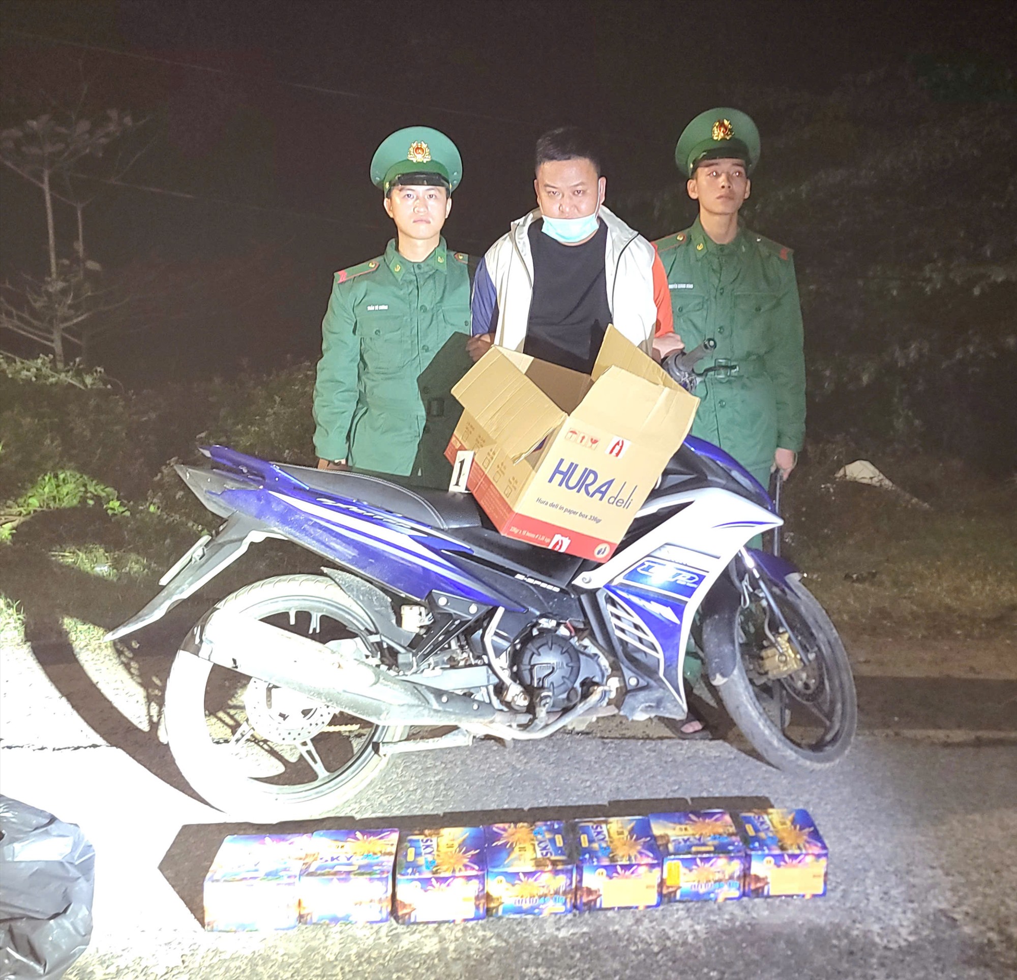 Cụ thể, vào lúc 20 giờ 30 phút ngày 9/12, tại khu vực đường Quốc phòng thuộc thôn Trung An, xã Mỹ Thủy, Đồn Biên phòng Hải An chủ trì phối hợp với Công an xã đã phát hiện, bắt quả tang đối tượng T.V.D (thường trú tại thôn Trung An, xã Mỹ Thủy, tỉnh Quảng Trị) đang vận chuyển một thùng carton, bên trong có 07 hộp pháo hoa nổ loại 49 ống, mang nhãn hiệu nước ngoài, với tổng trọng lượng khoảng 14kg và một số tang vật, phương tiện có liên quan.