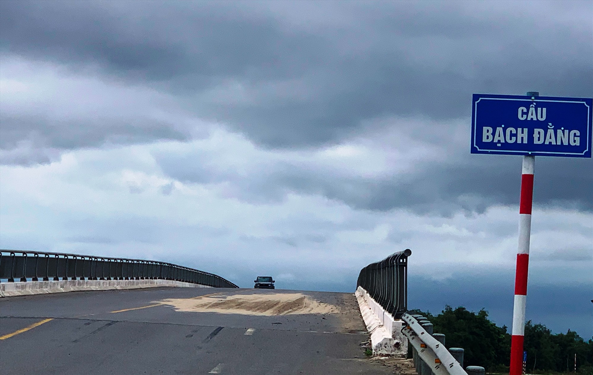 Ngày 26/5, mặt cầu Bạch Đằng bắc qua sông Hiếu nằm trên đường tránh TP. Đông Hà xuất hiện một dải cát dài gây khó khăn, nguy hiểm cho người đi đường.