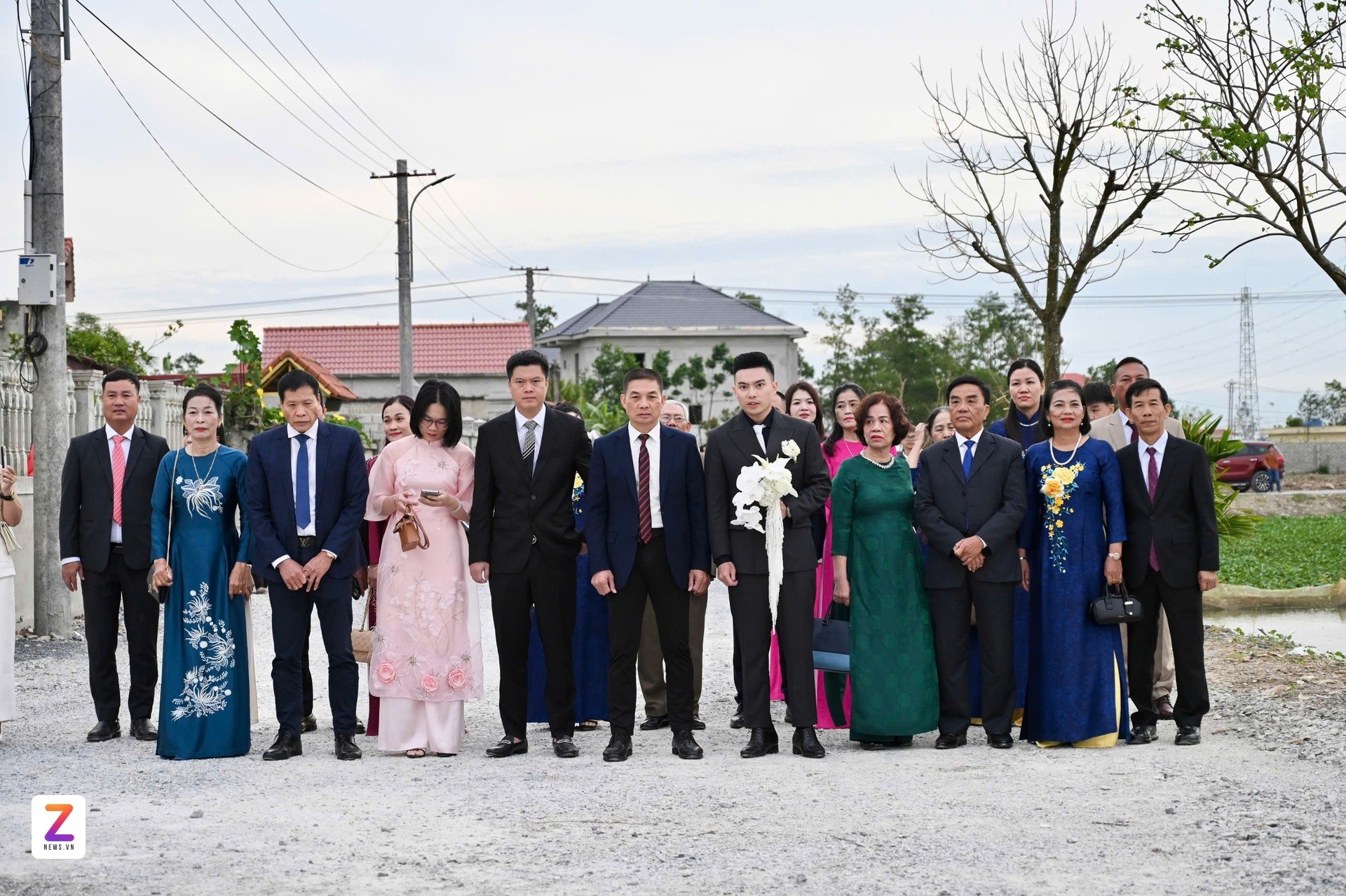 Đúng 6h30, gia đình chú rể Nguyễn Viết Vương xuất hiện. Chú rể cùng người thân luôn rạng rỡ, phấn khởi trong ngày vui.