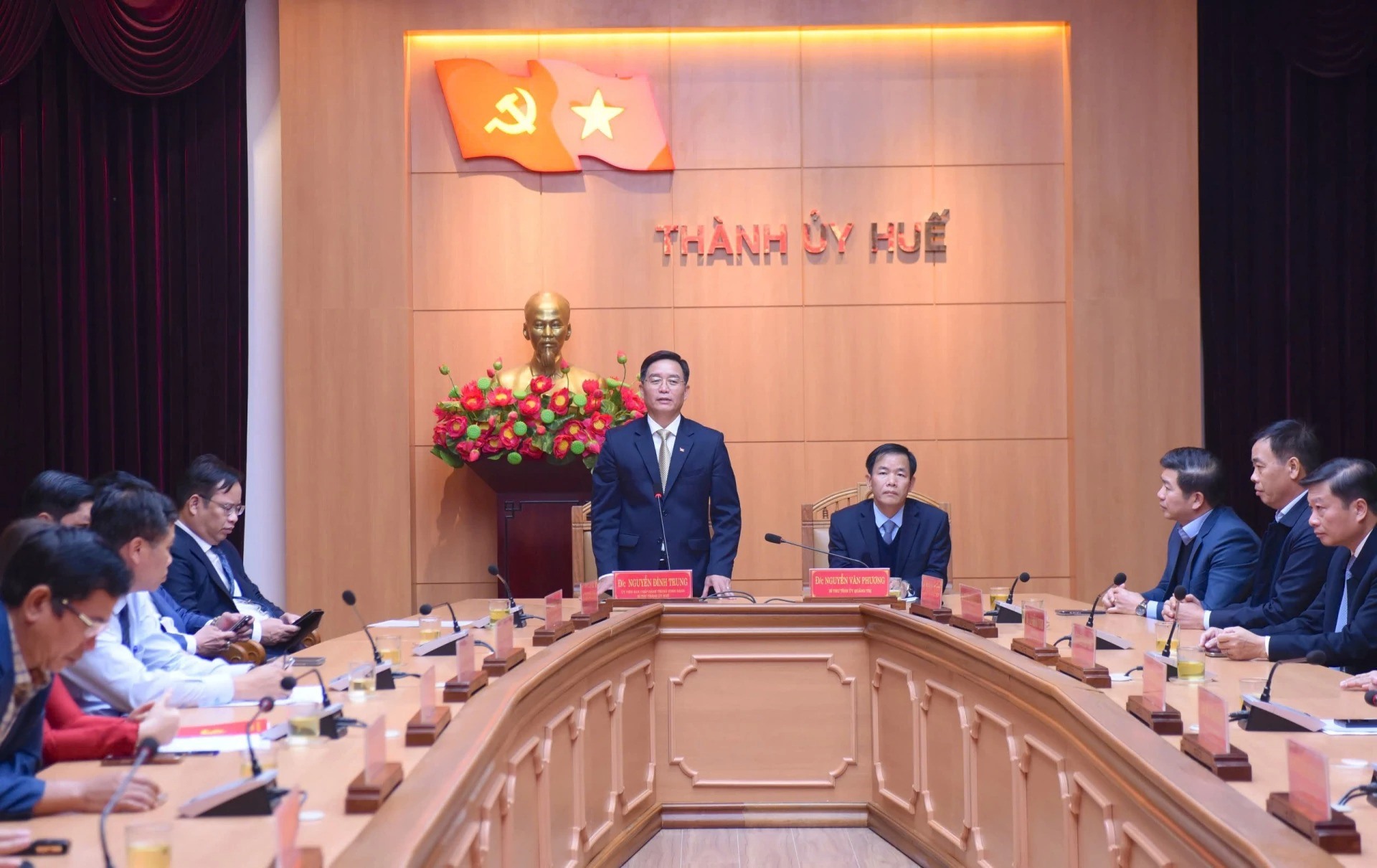 Chiều 7/1, tại TP. Huế, Thành ủy Huế phối hợp với Tỉnh ủy Quảng Trị tổ chức hội nghị công bố quyết định của Ban Bí thư về công tác cán bộ. Các đồng chí: Nguyễn Đình Trung, Ủy viên Trung ương Đảng, Bí thư Thành ủy Huế; Nguyễn Văn Phương, Bí thư Tỉnh ủy Quảng Trị chủ trì hội nghị.