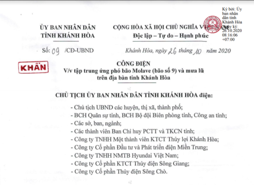 - Các đồng chí Bí thư, Chủ tịch Ủy ban nhân dân các tỉnh, thành phố từ Nghệ An đến Bình Thuận; các tỉnh khu vực Tây Nguyên trực tiếp chỉ đạo và chịu trách nhiệm về địa phương của mình. Yêu cầu giảm thiểu ở mức thấp nhất thiệt hại về người và tài sản do bão gây ra.