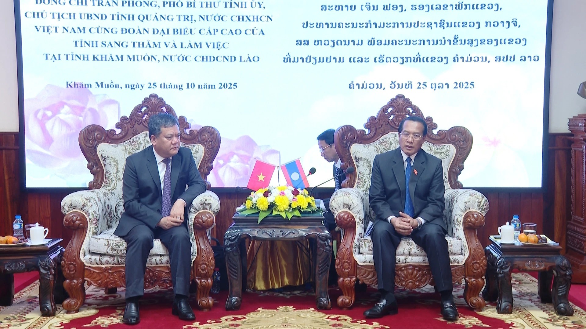 Sáng 25/10, Đoàn đại biểu cấp cao tỉnh Quảng Trị do đồng chí Trần Phong, Phó Bí thư Tỉnh ủy, Chủ tịch UBND tỉnh làm trưởng đoàn đã đến chào xã giao lãnh đạo tỉnh Khammuane. Tiếp đoàn có đồng chí Văn-xay Phong-sạ-vẳn, Ủy viên Ban Chấp hành Trung ương Đảng Nhân dân cách mạng Lào, Bí thư, Tỉnh trưởng tỉnh Khammuane. Tham dự có đồng chí Đặng Thị Hải Tâm, Tổng lãnh sự Việt Nam tại Savannakhet.