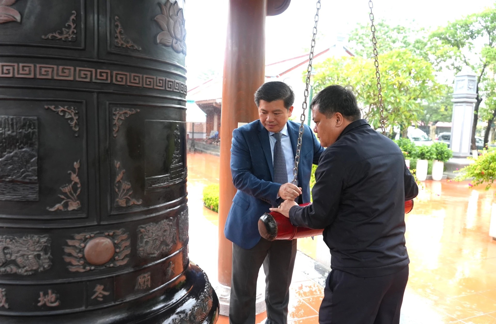 Tại buổi lễ, đồng chí Trần Vũ Khiêm, Phó Bí thư Thường trực Tỉnh ủy, Trưởng Ban Tổ chức Tỉnh ủy và đồng chí Trần Phong, Phó Bí thư Tỉnh ủy, Chủ tịch UBND tỉnh đã thực hiện nghi thức thỉnh chuông.