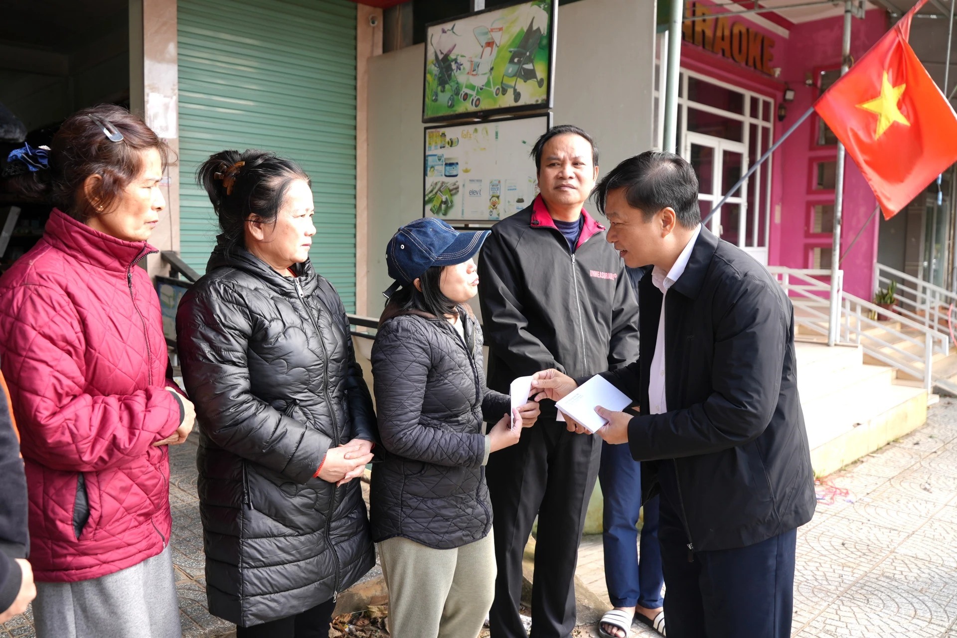 Đồng chí Chủ tịch UBND tỉnh Lê Hồng Vinh cũng đã trực tiếp thăm hỏi, động viên, chia sẻ với những khó khăn mà người dân đang gặp phải và mong muốn bà con ổn định tinh thần, theo dõi sát diễn biến sạt lở để cùng với chính quyền địa phương nghiên cứu các phương án xử lý nhằm bảo đảm an toàn tính mạng, tài sản cho người dân và ổn định đời sống lâu dài.