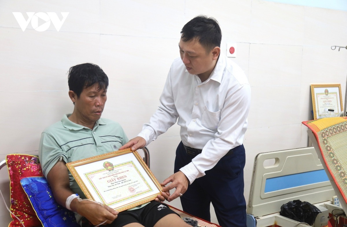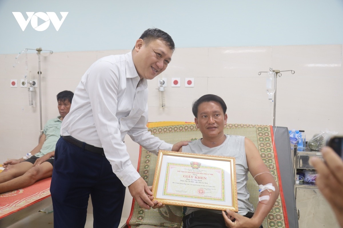 Đồng thời tặng giấy khen ông Lê Thanh Hùng, chủ tàu An Vĩnh Express vì có thành tích trong công tác cứu hộ, cứu nạn giữa bão.