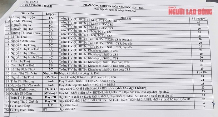 Thực tế tại Trường Tiểu học số 2 Thanh Trạch, cả Hiệu trưởng và Phó Hiệu trưởng đều không có lịch giảng dạy rõ ràng, không xác định cụ thể dạy môn gì, tiết nào, ngày nào.