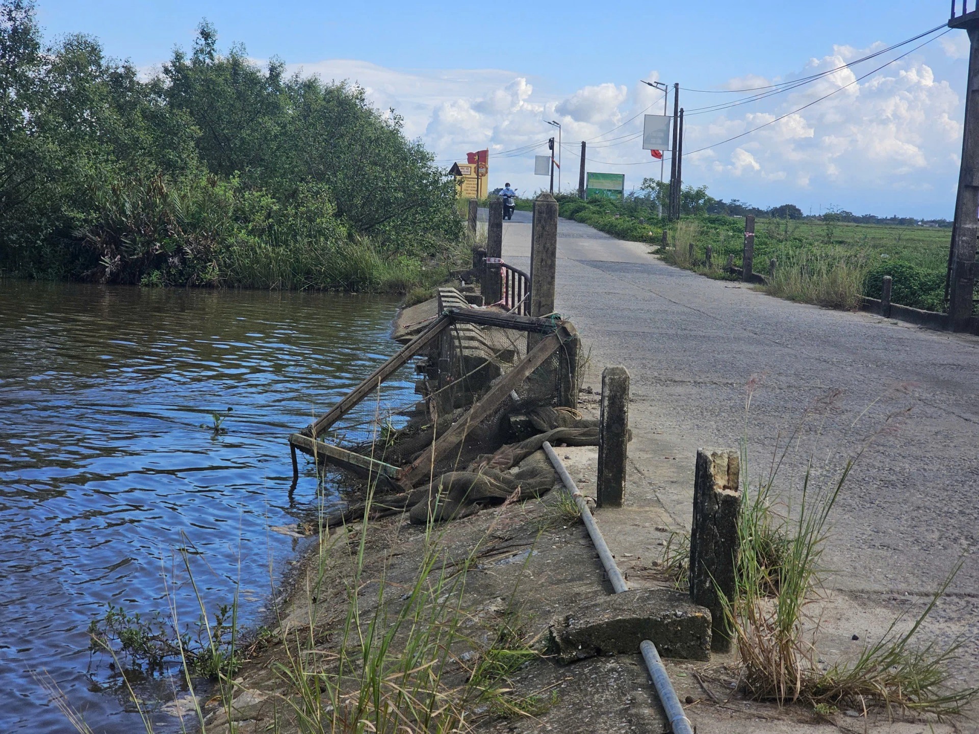 Mặt tràn lởm chởm ổ gà; rào chắn hai bên thành gãy đổ, được người dân thay bằng những thanh sắt chắn tạm bợ. Không những thế, do cao độ mặt tràn thấp hơn cao độ mặt đường hiện trạng khoảng 1m-1,2m nên mỗi khi mùa mưa đến, lưu lượng nước đổ về lớn, tràn qua mặt đường, gây khó khăn cho việc đi lại của người dân, đặc biệt là các em học sinh.