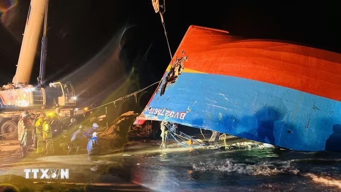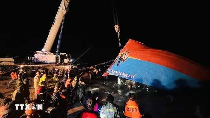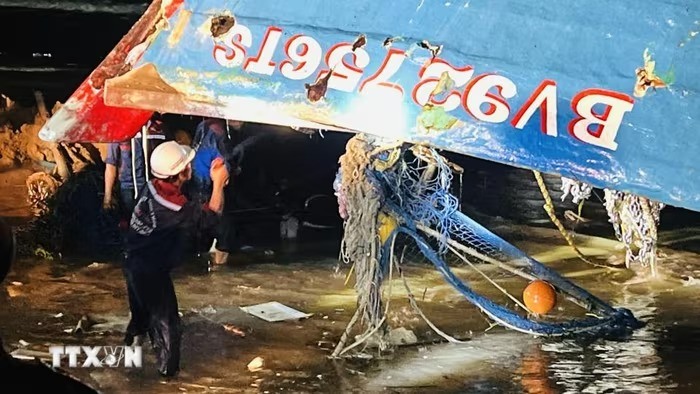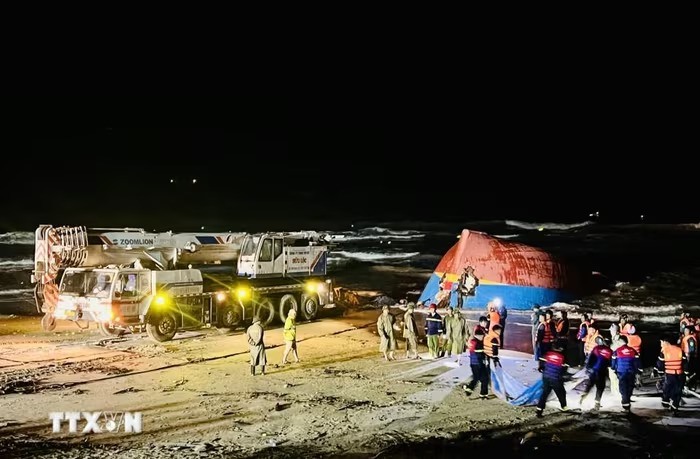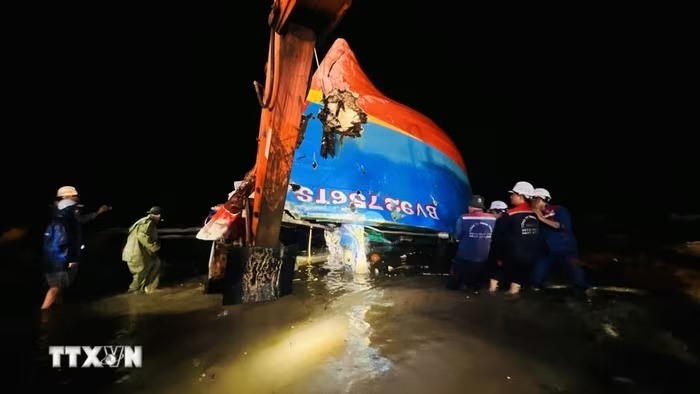 Tối 29/9, lực lượng chức năng tỉnh Quảng Trị huy động tối đa nhân lực, phương tiện, triển khai công tác trục vớt tàu cá bị chìm để tìm kiếm 9 thuyền viên còn mất tích trong điều kiện đêm tối, gió lớn.