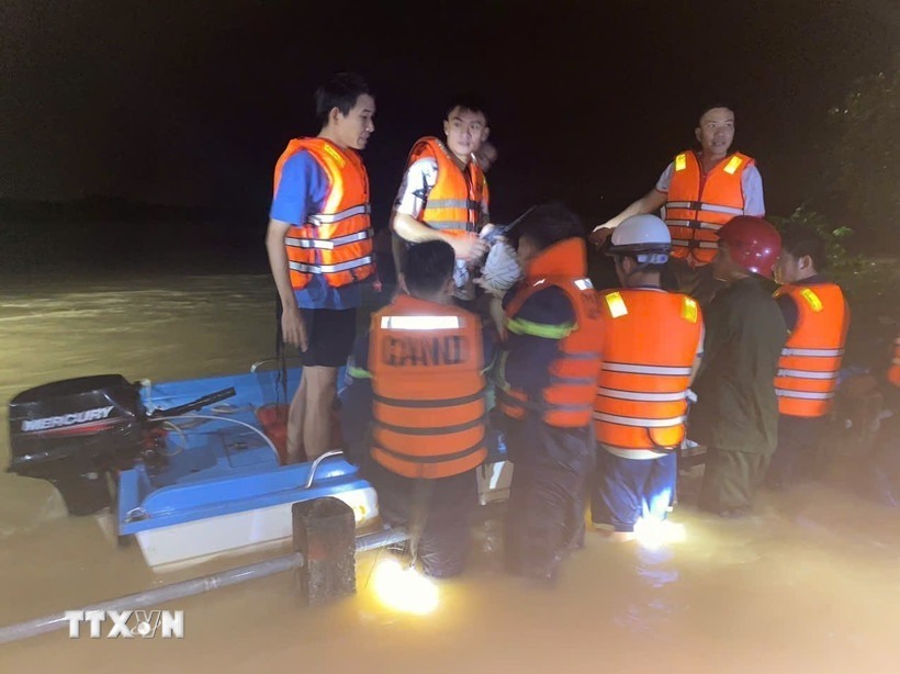 Lực lượng chức năng xã Hiếu Giang, tỉnh Quảng Trị đã giải cứu thành công một số người dân bị mắc kẹt do nước lũ lên nhanh trên sông Hiếu trong khi đi bắt dế, đánh cá.