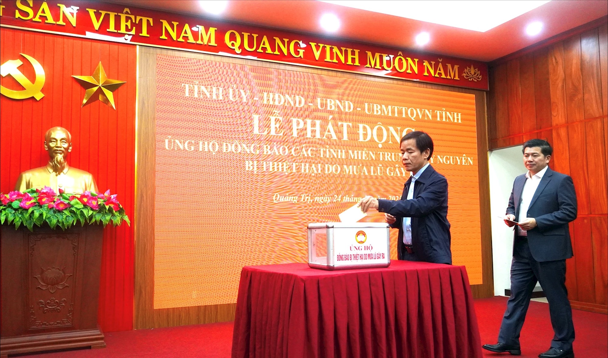 Sáng 24/11, Tỉnh ủy, HĐND, UBND, Ủy ban MTTQ Việt Nam tỉnh Quảng Trị đã phát động đợt vận động nhằm kêu gọi hỗ trợ nhân dân các tỉnh khu vực miền Trung, Tây Nguyên bị ảnh hưởng bởi đợt mưa lũ lịch sử.