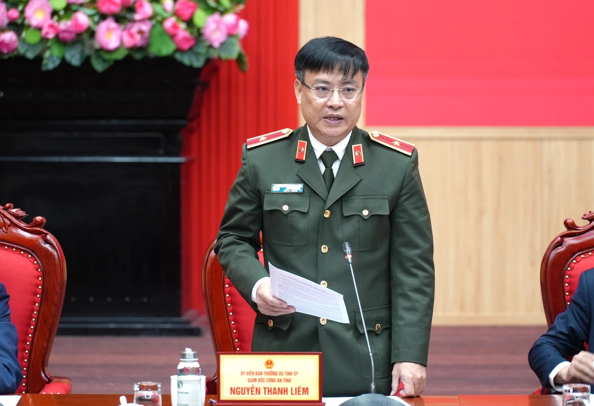 Cùng chủ trì có các đồng chí: Hoàng Xuân Tân, Phó Chủ tịch UBND tỉnh, Phó trưởng Ban Thường trực Ban Chỉ đạo; Thiếu tướng Nguyễn Thanh Liêm, Ủy viên Ban Thường vụ Tỉnh ủy, Giám đốc Công an tỉnh, Phó trưởng Ban Chỉ đạo và các đồng chí Phó trưởng Ban Chỉ đạo. Phiên họp được kết nối trực tuyến đến điểm cầu các xã, phường, đặc khu trên địa bàn tỉnh.
