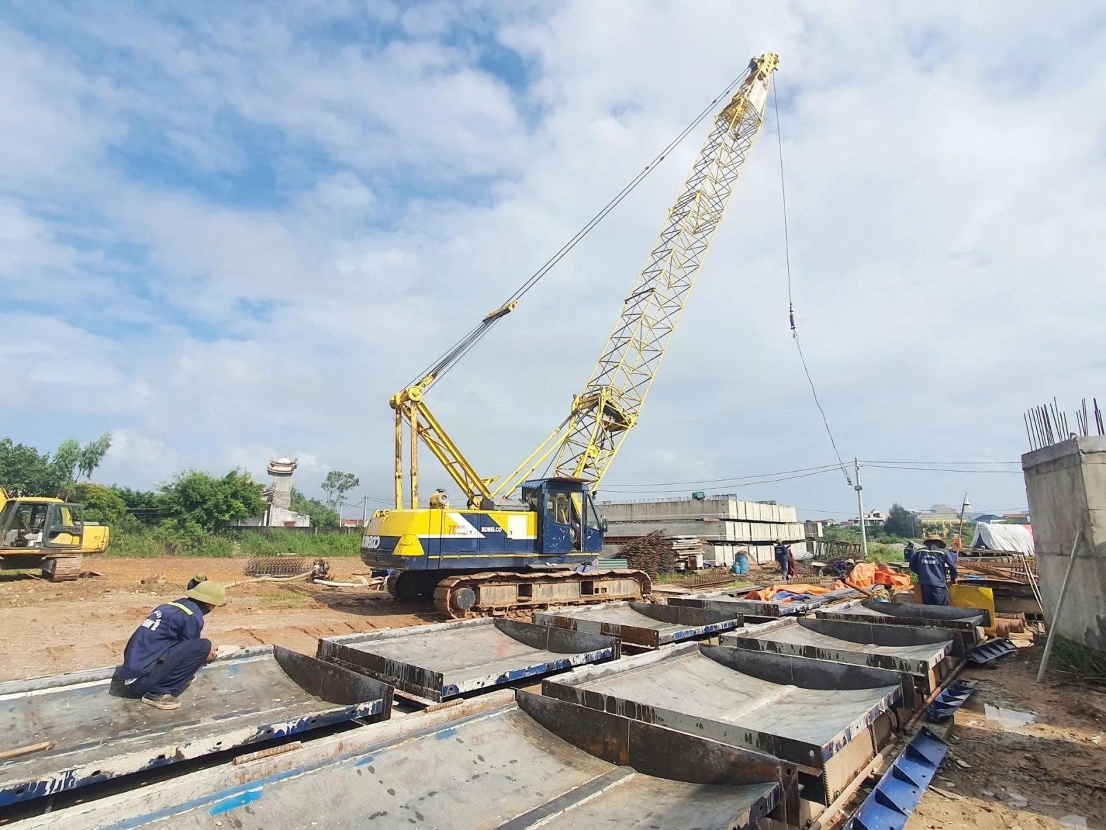Về tiến độ thi công, nhà thầu đã hoàn thành mố M2, trụ T2 và đúc 38/45 phiến dầm cầu vượt đường sắt; hiện đang thi công mố M1 và chuẩn bị triển khai xà mũ trụ T1. Về phần đường, hệ thống thoát nước dọc cơ bản đã hoàn thành, nhà thầu đang thi công hệ thống thoát nước ngang tại các khu vực không vướng mặt bằng.