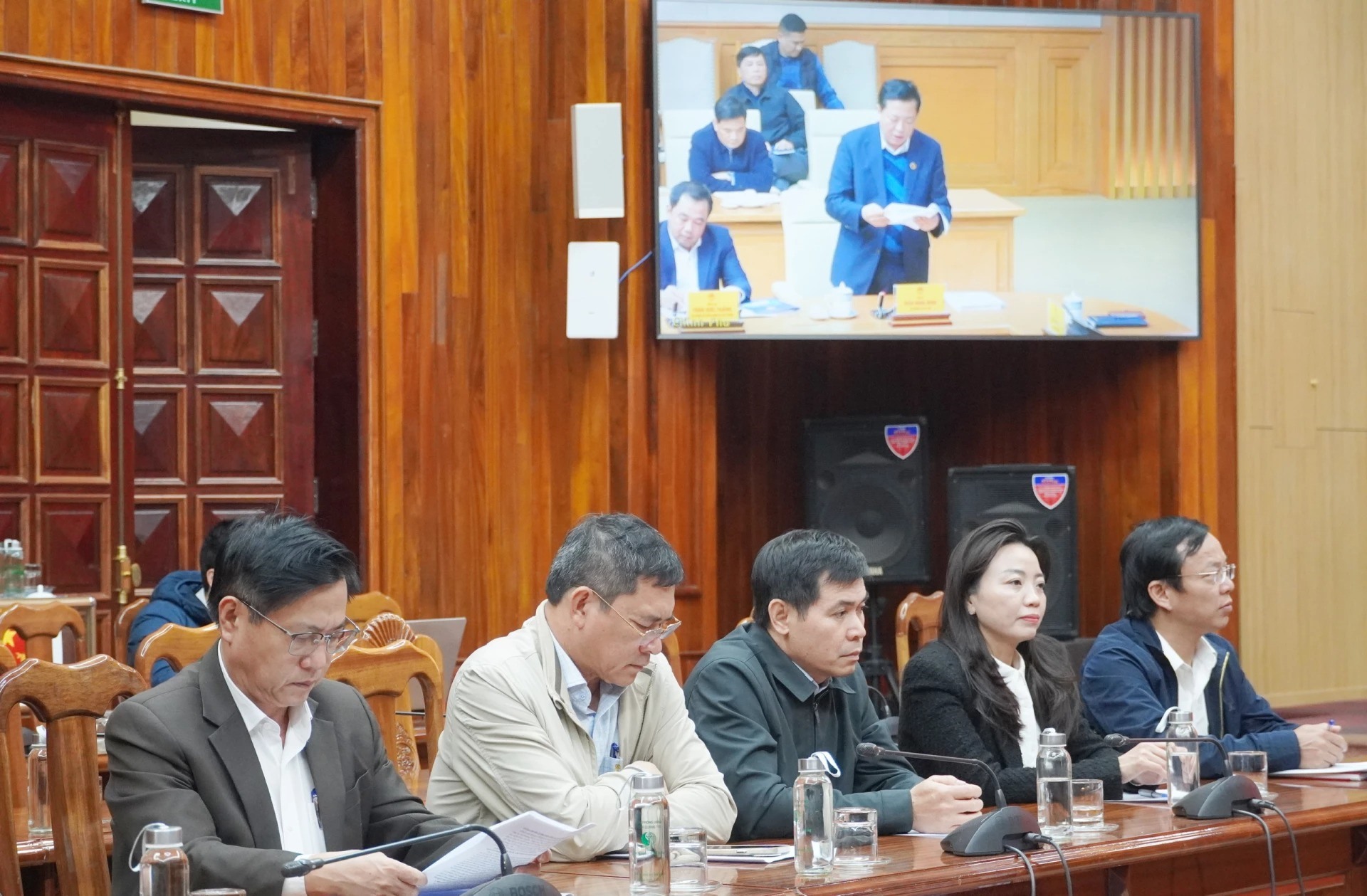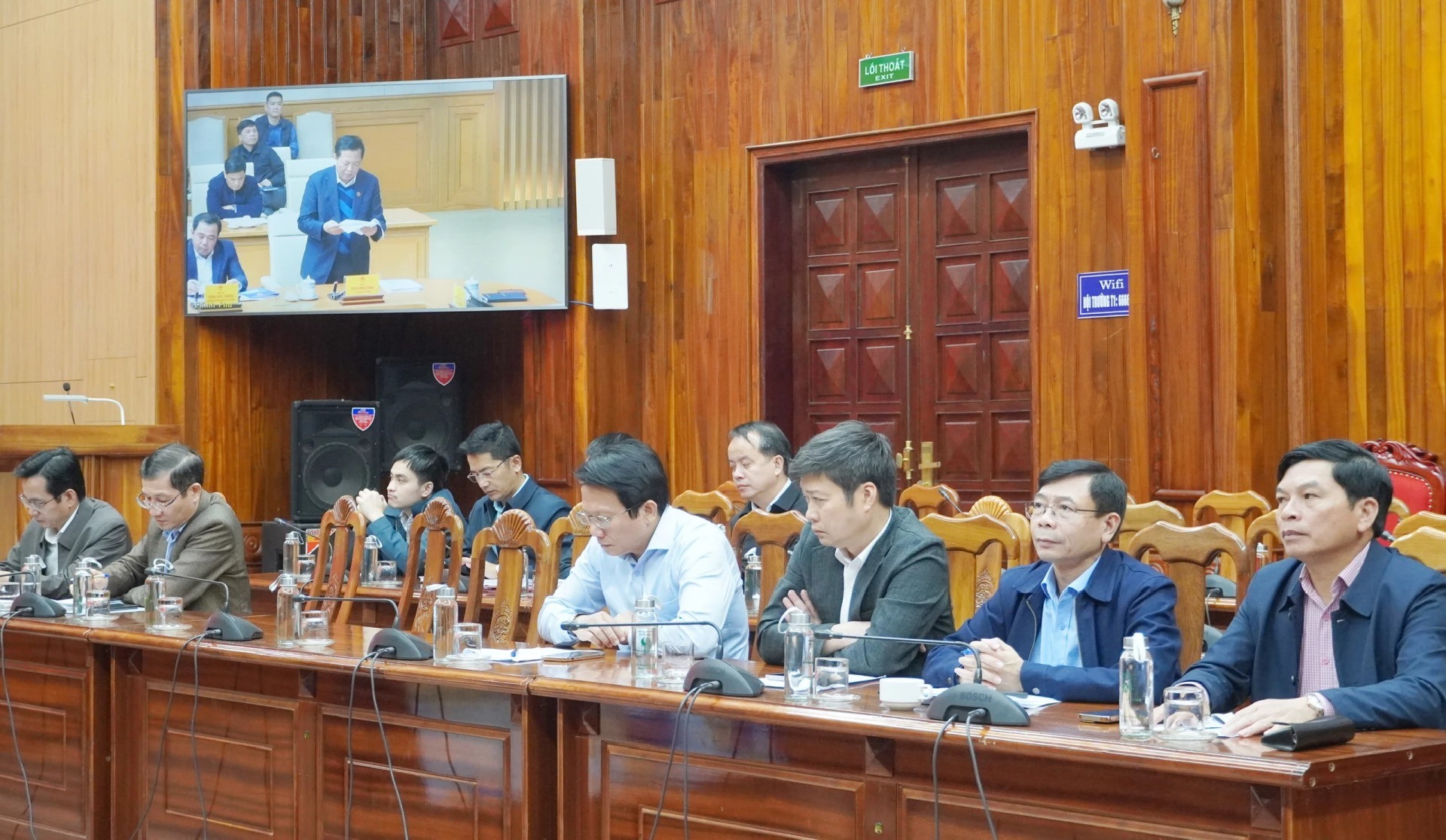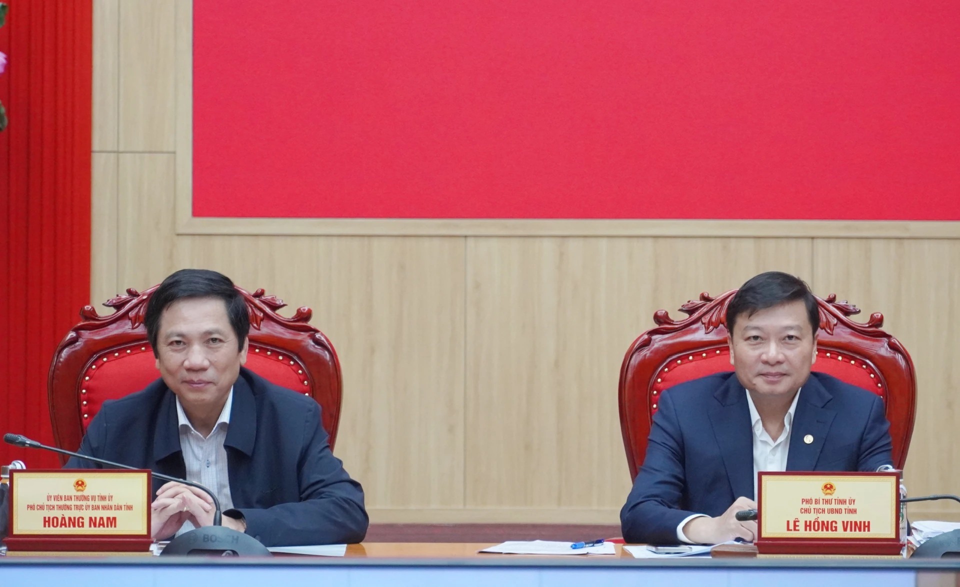 Đồng chí Lê Hồng Vinh, Phó Bí thư Tỉnh ủy, Chủ tịch UBND tỉnh và đồng chí Hoàng Nam, Ủy viên Ban Thường vụ Tỉnh ủy, Phó Chủ tịch Thường trực UBND tỉnh; lãnh đạo các sở, ngành liên quan dự phiên họp tại điểm cầu tỉnh Quảng Trị.
