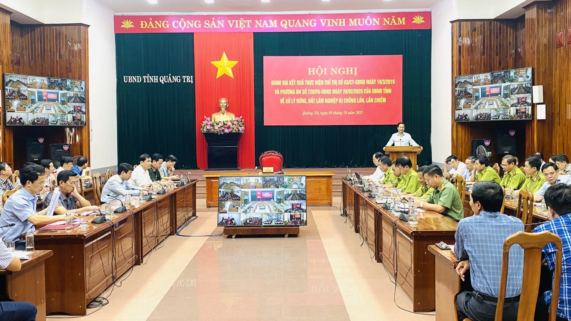 Chiều 9/10, UBND tỉnh tổ chức cuộc họp trực tiếp kết hợp trực tuyến với các sở, ngành, đơn vị, địa phương nhằm đánh giá kết quả thực hiện Chỉ thị số 03/CT-UBND, ngày 19/3/2019 và Phương án số 728/PA-UBND, ngày 28/2/2025 của UBND tỉnh về xử lý rừng, đất lâm nghiệp bị chồng lấn, lấn chiếm. Đồng chí Hoàng Nam, Ủy viên Ban Thường vụ Tỉnh ủy, Phó Chủ tịch Thường trực UBND tỉnh chủ trì hội nghị.