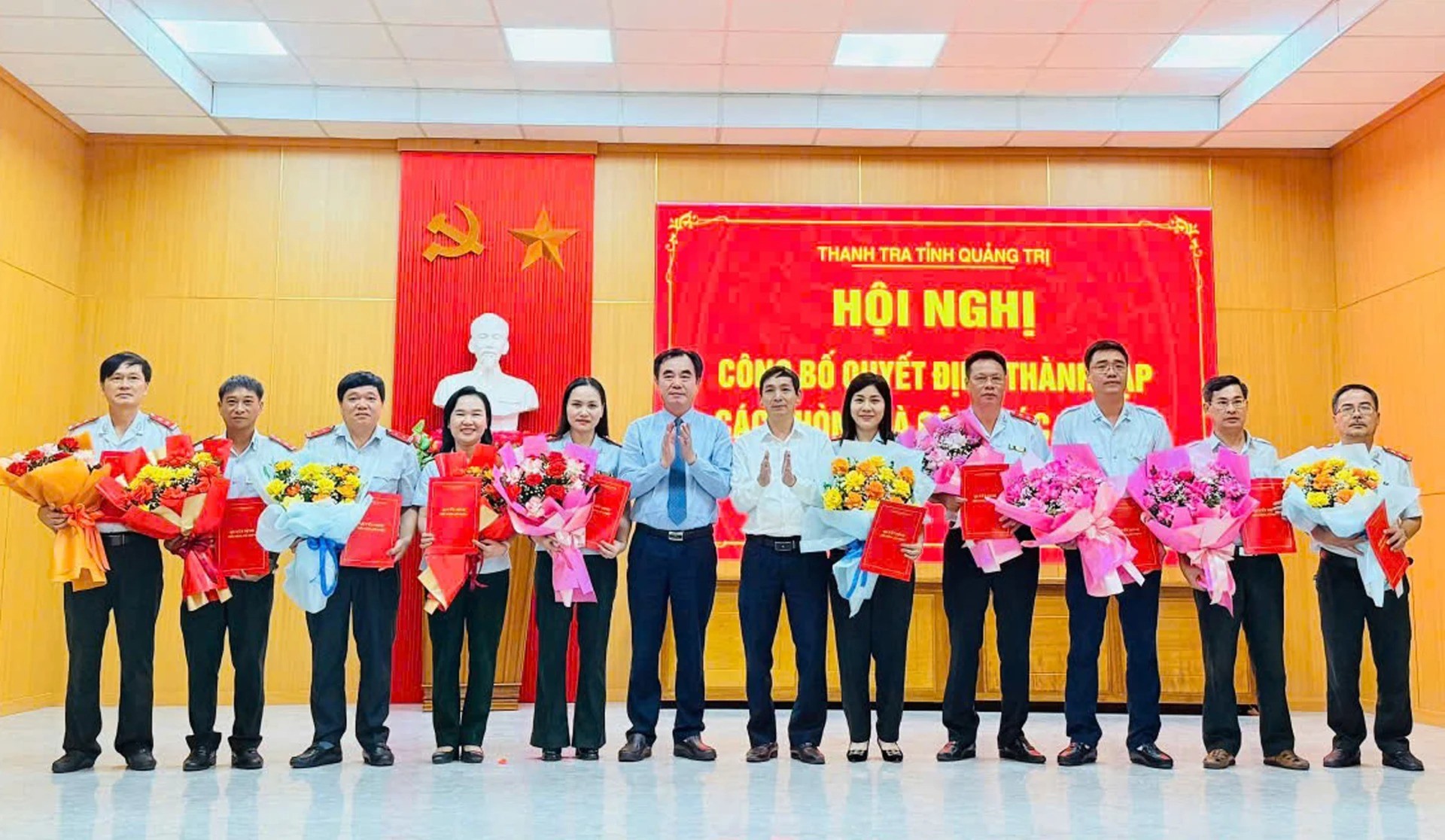 Theo đó, bộ máy Thanh tra tỉnh được tổ chức thành 10 phòng với sự phân công nhiệm vụ theo lĩnh vực và địa bàn: Văn phòng; Phòng Phòng, chống tham nhũng, lãng phí, tiêu cực (Phòng Nghiệp vụ 1); Phòng Giám sát, thẩm định và xử lý sau thanh tra (Phòng Nghiệp vụ 2); Phòng Thanh tra, giải quyết khiếu nại, tố cáo lĩnh vực Nông nghiệp-Môi trường, Dân tộc-Tôn giáo (Phòng Nghiệp vụ 3); Phòng Thanh tra, giải quyết khiếu nại, tố cáo lĩnh vực Xây dựng-Công thương (Phòng Nghiệp vụ 4); Phòng Thanh tra, giải quyết khiếu nại, tố cáo lĩnh vực Tài chính-Khoa học và Công nghệ (Phòng Nghiệp vụ 5); Phòng Thanh tra, giải quyết khiếu nại, tố cáo lĩnh vực Y tế, Nội vụ, Tư pháp (Phòng Nghiệp vụ 6); Phòng Thanh tra, giải quyết khiếu nại, tố cáo lĩnh vực Ngoại giao, Giáo dục và Đào tạo, Văn hóa-Thể thao và Du lịch (Phòng Nghiệp vụ 7); Phòng Thanh tra, giải quyết khiếu nại, tố cáo tại địa bàn phía Bắc Quảng Trị (Phòng Nghiệp vụ 8); Phòng Thanh tra, giải quyết khiếu nại, tố cáo tại địa bàn phía Nam Quảng Trị (Phòng Nghiệp vụ 9).
