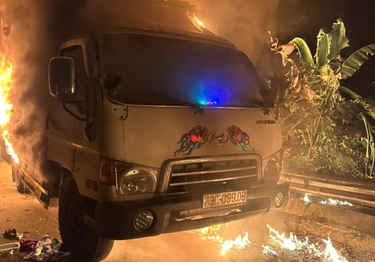 Thời điểm xảy ra sự việc, trên xe có 2 vợ chồng đang chở các mặt hàng đi giao cho các cửa hàng tạp hóa. Sau đó chiếc xe bốc cháy dữ dội. Rất may, 2 người trên xe đã kịp thời thoát ra ngoài nên không có thiệt hại về người.