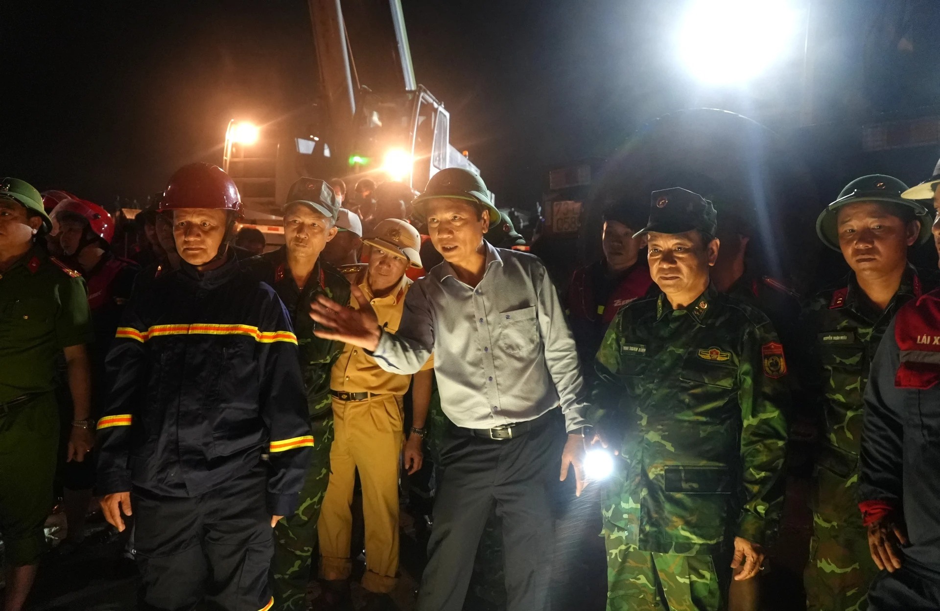 Trực tiếp kiểm tra, chỉ đạo xuyên đêm tại hiện trường, đồng chí Hoàng Nam, Phó Chủ tịch Thường trực UBND tỉnh đã động viên các cán bộ, chiến sĩ và các lực lượng tham gia công tác cứu nạn, cứu hộ, tìm kiếm thuyền viên mất tích.