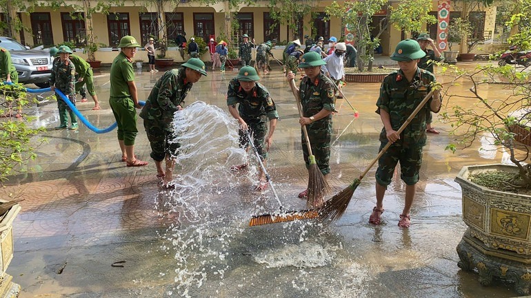 Cùng ngày, tại xã Lệ Thủy, Ban Chỉ huy Bộ đội Biên phòng tỉnh Quảng Trị đã điều động 30 cán bộ, chiến sĩ phối hợp chính quyền địa phương, nhà trường và phụ huynh tổ chức thu dọn bùn đất, vệ sinh khuôn viên trường, các phòng học tại Trường trung học cơ sở Kiến Giang; chuẩn bị đầy đủ điều kiện để đón học sinh trở lại trường học tập theo đúng thời gian chương trình.
